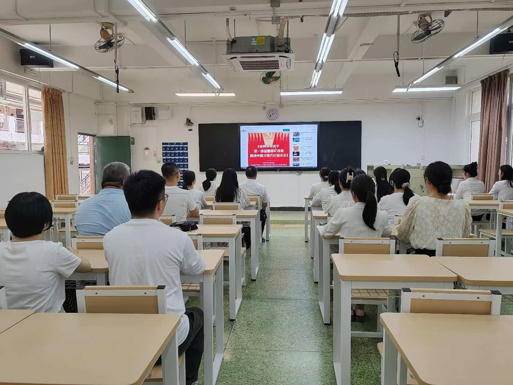 本次活动旨在通过全面、系统的学习,帮助党员教师深入理解二十届三中全会《决定》的核心要义、精神实质和重大意义。活动以“辅导+问答”的创新形式展开,由支部书记李志强亲自领学,他不仅结合专家解读,还融入实际案例,对《决定》中的重点内容进行深入剖析和生动讲解。同时,活动特设互动问答环节,鼓励党员教师积极提问,共同探讨学习中的疑点和难点,营造了浓厚的学习氛围。