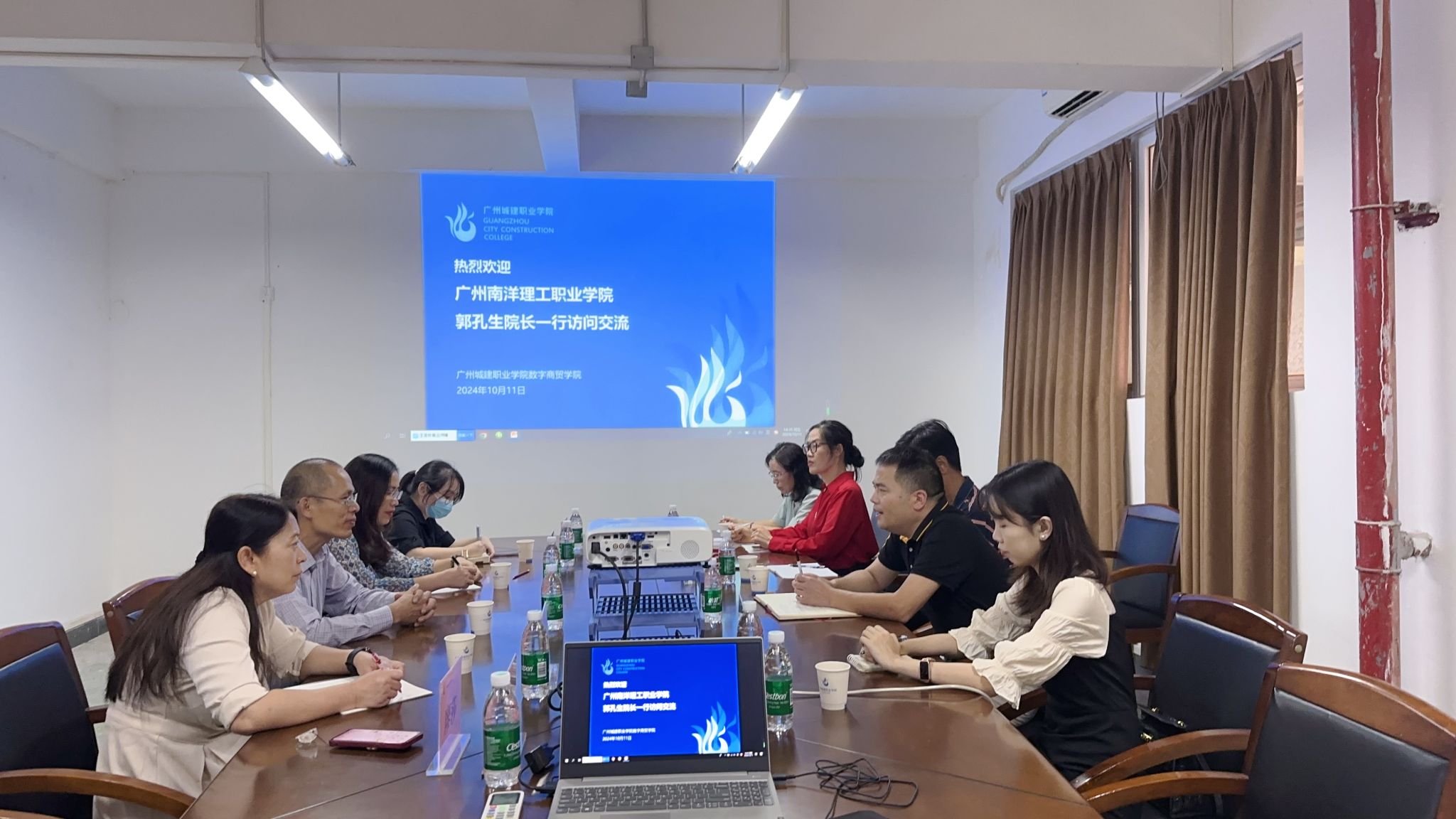 会上,赵团结首先对郭孔生一行的到来表示热烈欢迎,并对广州南洋理工职业学院长期以来在人文与教育学科建设方面取得的成就表示赞赏。随后,双方就数字商贸领域的教学理念、课程设置、实践教学等方面进行了深入的讨论和交流。郭孔生分享了广州南洋理工职业学院在人文学科融合数字技术方面的经验和成果,特别提到了在体育教育、商务英语专业、商务日语专业培养学生的创新能力和实践能力方面的成功做法。