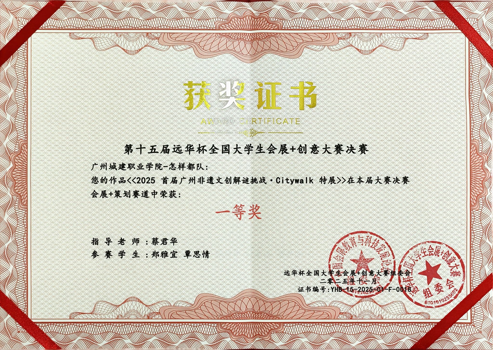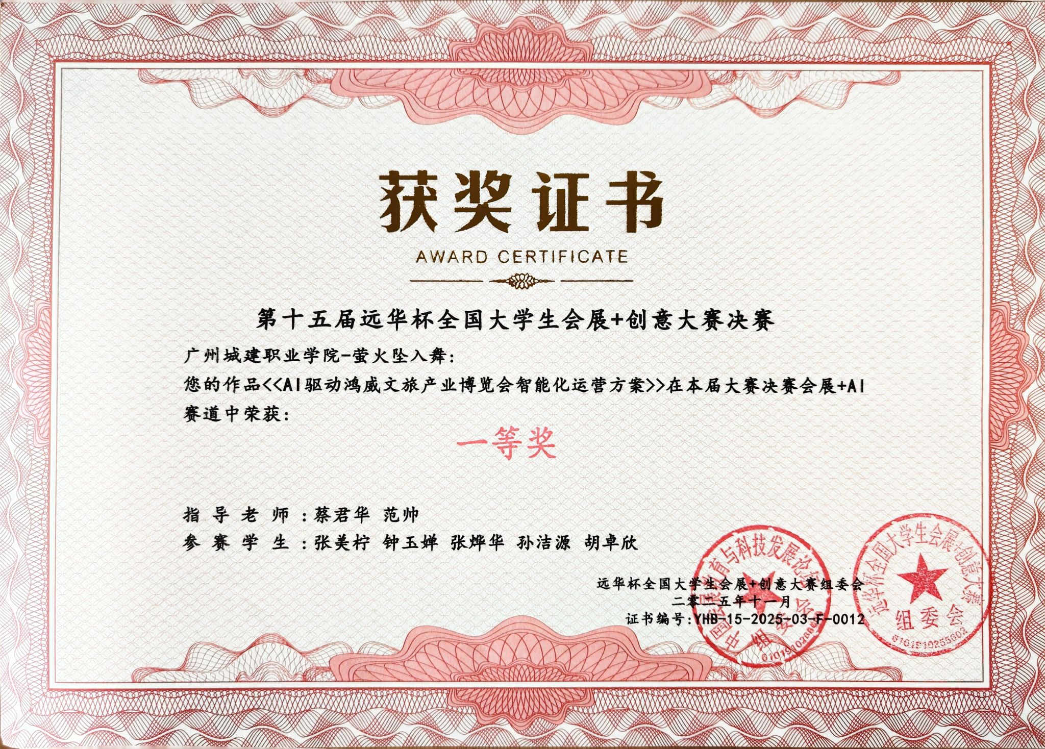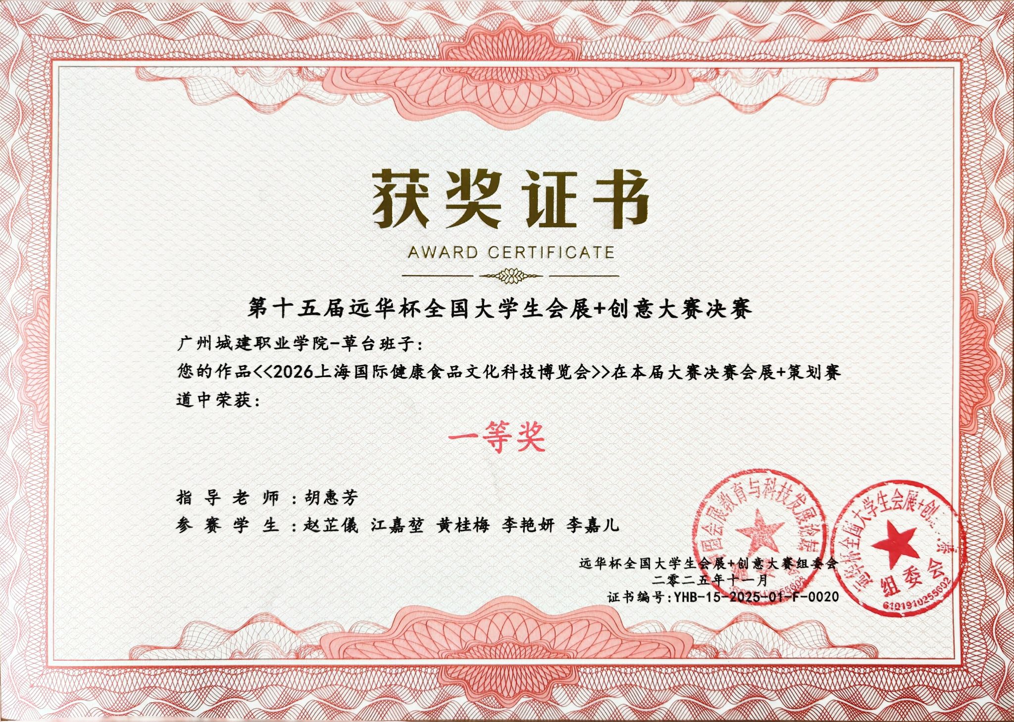 在第十五届“远华杯”全国大学生会展+创意大赛决赛舞台上,我院会展策划与管理专业学子凭借扎实的专业功底与创新的实践方案,最终斩获3个全国一等奖(会展策划赛道2项、会展AI赛道1项),主办方同步授予学院教学成果一等奖。