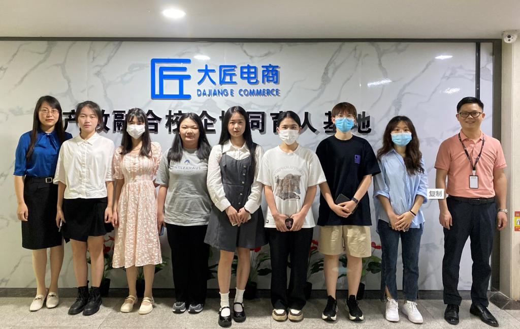 5月27日,为深入贯彻学院产教融合的有关要求,促进学生高质量就业及校企深度合作,外语外贸学院商务英语专业梁志华、肖遥遥两位老师带领20级、21级7名学生走访广州大匠电子商务有限公司。