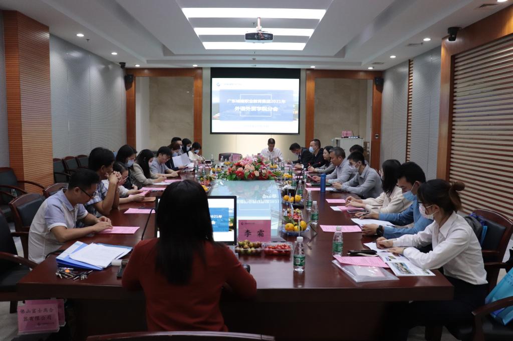 10月28日下午,广东城建职教集团2021年会外语外贸学院分会在学校会议中心4号会议室顺利召开,会议邀请了包括从都国际企业有限公司、广州益武茶博展览有限公司、广州白云国际会议中心、珠海长隆投资发展有限公司、深圳金品尚电子科技有限公司、广州棒谷科技股份有限公司、中山市里奥照明科技有限公司等14家知名企业领导和代表出席;副校长张德宜,职教集团理事会秘书长、外语外贸学院院长李志强,外语外贸学院副院长刘宁,办公室主任罗青及学院各教研室主任出席了会议,会议由外语外贸学院副院长李霜主持。