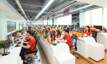 图1 学校老师与企业总经理合影 图2 美易达集团客服工作室