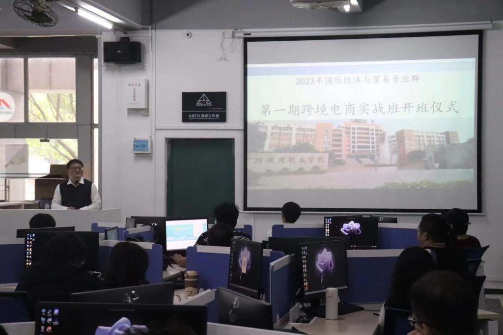 在开班仪式上,李志强做了重要发言,表示实战班开班之不易,最初面临着很多的困难。但是为了培养高质量跨境电商的人才,保证在校学生能真枪实战地学到跨境运营的技能,学院冲破了重重阻力才有了今天的开班仪式。他希望同学们在接下来的实战中要步履坚定、稳扎稳打、积累经验、强化自己的职业技能。