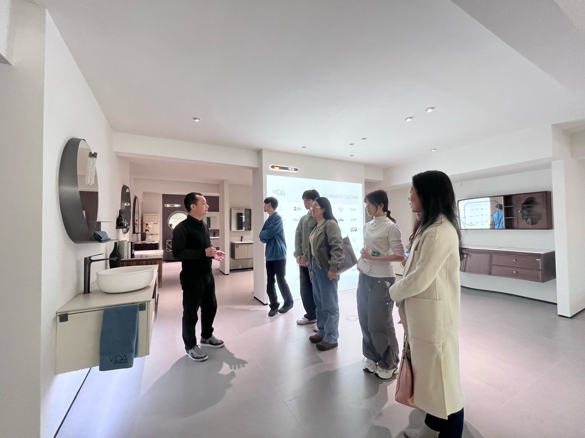 在参观中,溢达卫浴公司负责人介绍了企业发展历程及核心业务,详细分享了跨境电商领域的探索与成果。双方围绕校企合作展开深入交流,计划通过企业招聘国贸与跨境电商专业实习生、共建“厂中校”“校中厂”模式、支持专业教师企业锻炼等方式,推进课堂教学与产业实践的深度融合。同时,公司计划协助指导国际创业比赛,为参赛学生提供资源支持与行业经验,助力其提升市场拓展能力与综合素质。