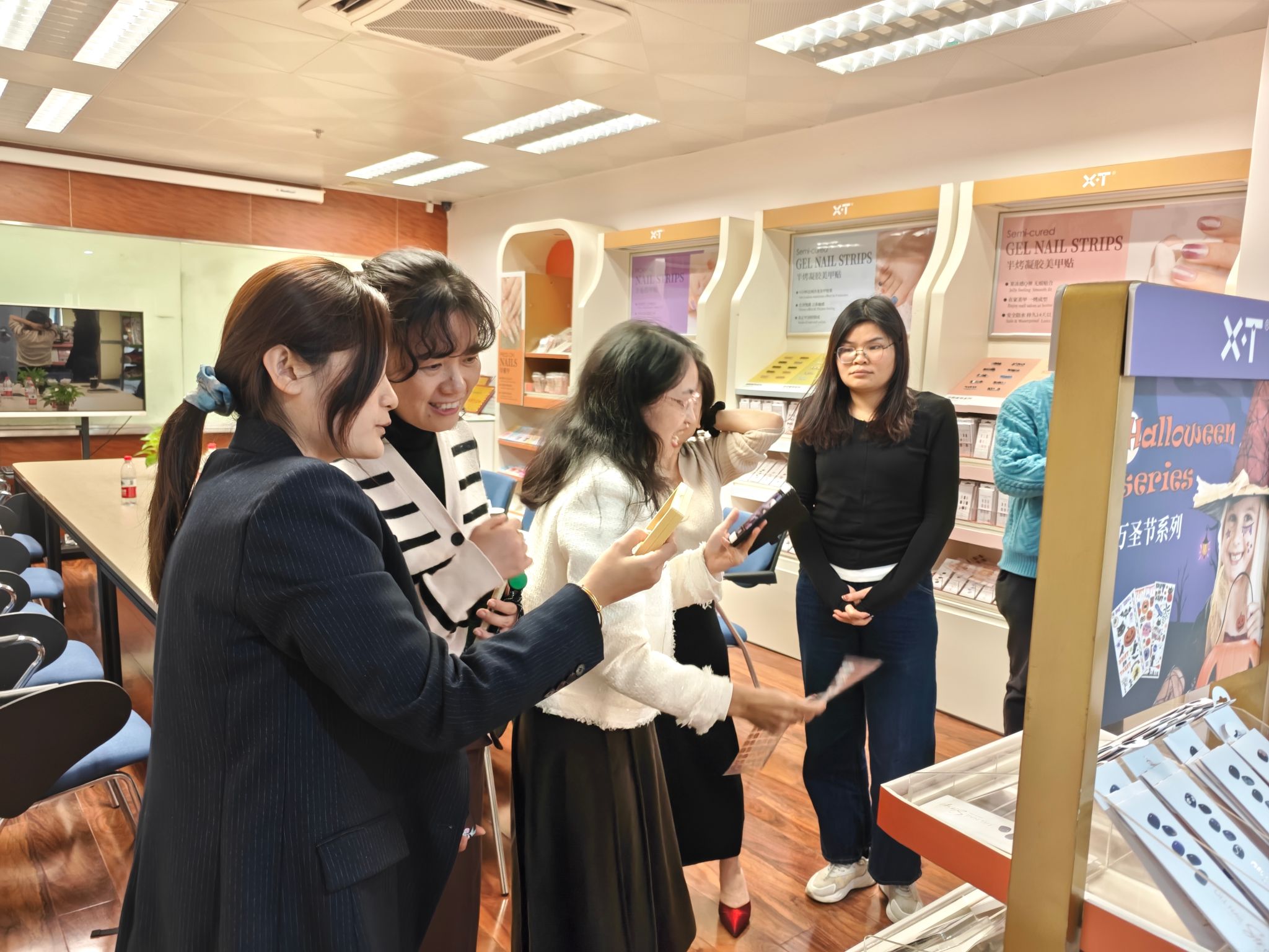 会议结束后,在廖静宜的带领下参观了企业的美甲贴展台。此次走访不仅为双方的深度合作奠定了基础,也为伟德国际victor1946的师生们提供了宝贵的实习和就业机会,进一步促进了校企合作的深入发展。