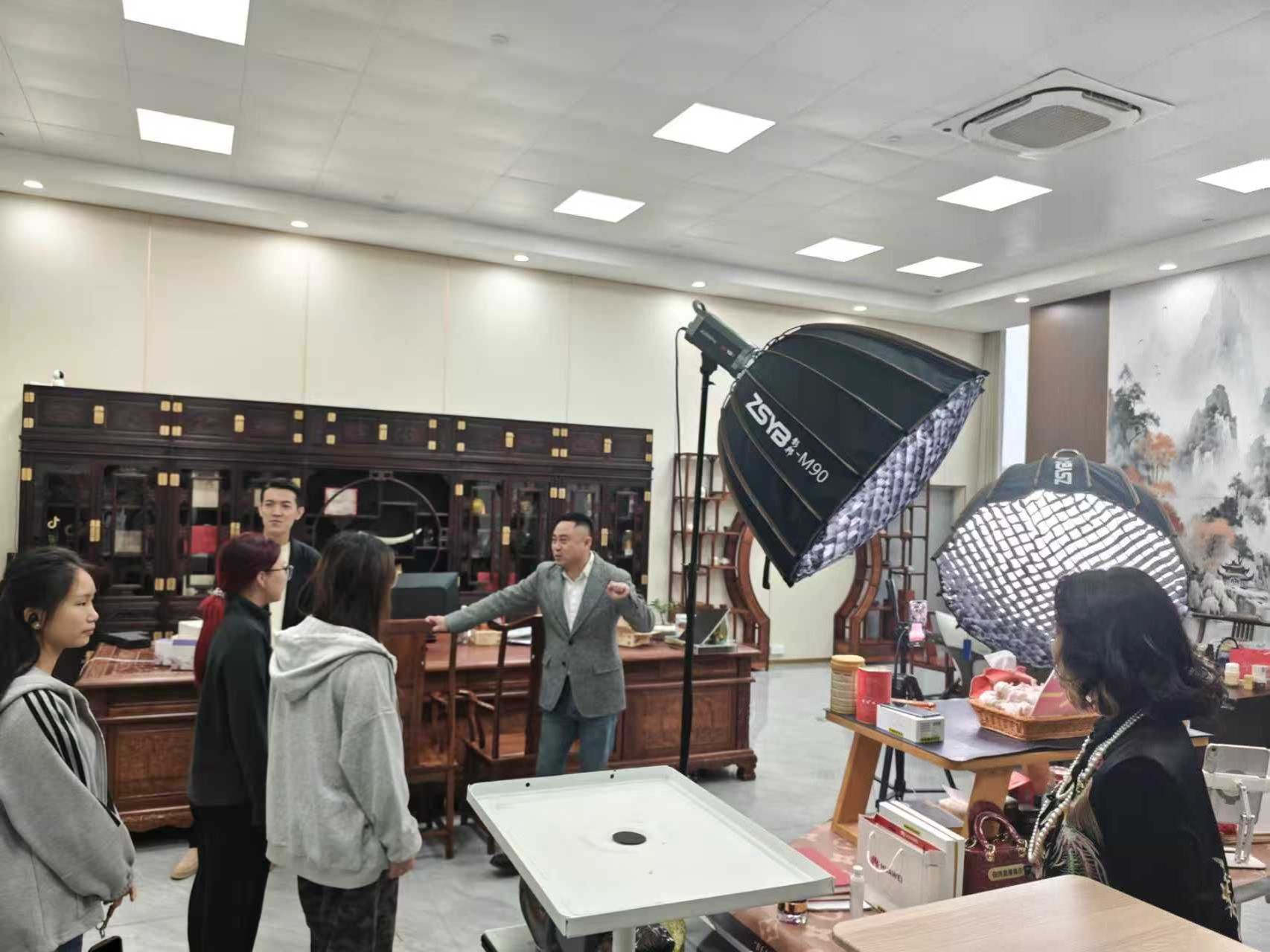 在刘玉恒总经理的亲自陪同与讲解下,师生们深入参观了公司的现代化直播间,零距离感受了前沿的电商直播生态。交流环节中,刘总进一步分享了公司的运营架构、商业模式与战略规划,为同学们带来了一场生动的“市场一线课”,深化了大家对行业实践的认知。
