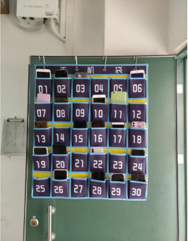 班级手机袋负责人在预备铃响前组织同学们将手机关机或调为静音状态,按照学号的顺序放入教室的手机袋中,对未放手机的空袋子编号做好登记,及时汇报辅导员。课后,任课老师组织同学们有序拿回自己的手机,有效的杜绝手机错拿或者丢失事件的发生。