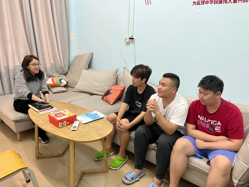 3月23日下午,外语外贸学院学工副院长刘榕敏前往走访18栋学生公寓,看望外语外贸学院的相关学生,了解外语外贸学院学生返校后新学期的学习情况与生活状况,相关专业的辅导员也参与了此次走访活动。