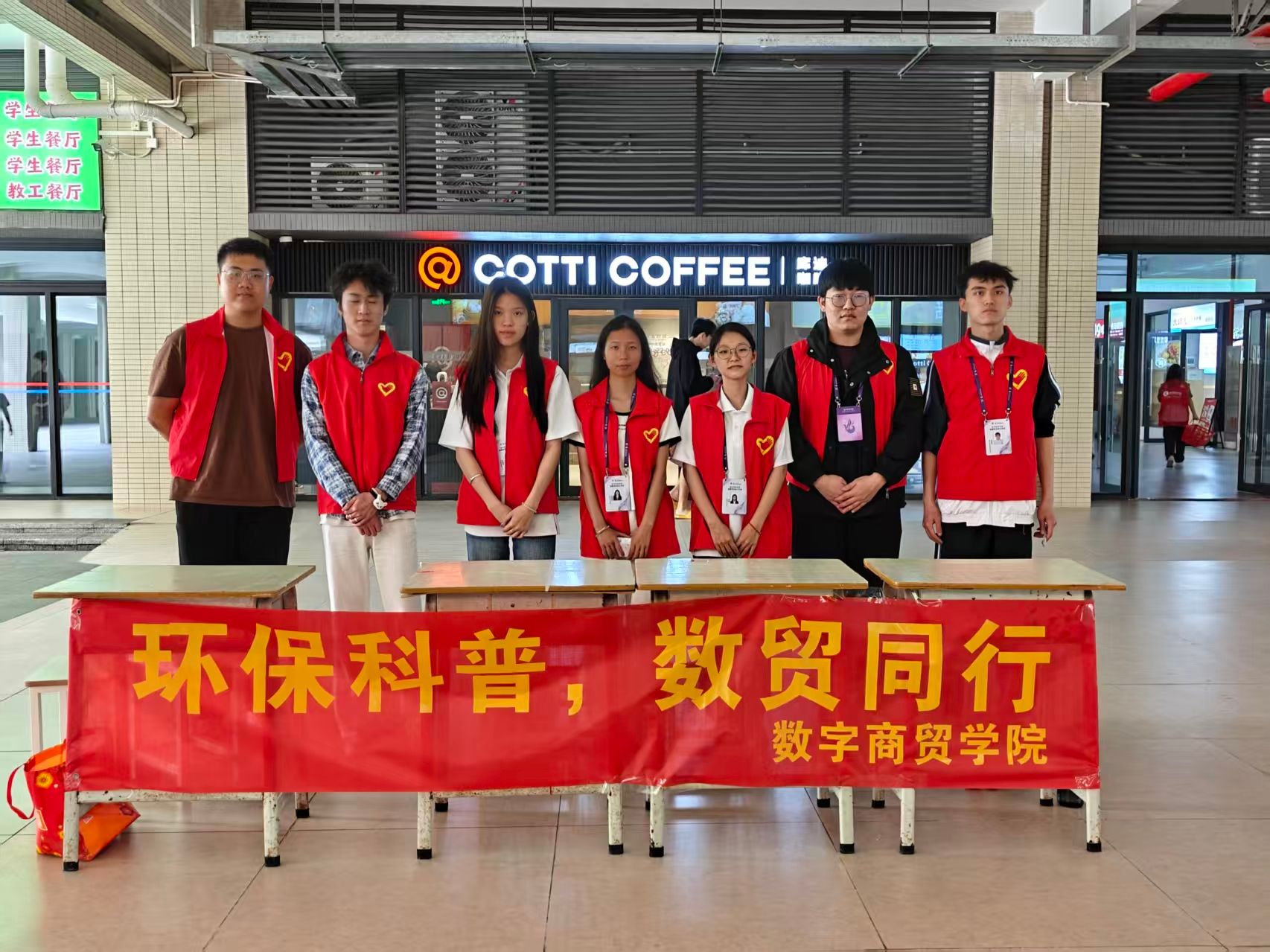 为深入践行习近平生态文明思想,普及环保知识,引导全院师生树立绿色低碳理念,3月23日,伟德国际victor1946团委组织志愿者在饭堂1楼空地开展“环保科普,数贸同行”志愿服务活动,以环保知识问答为核心形式,让环保理念深入人心,推动志愿服务与生态保护深度融合。