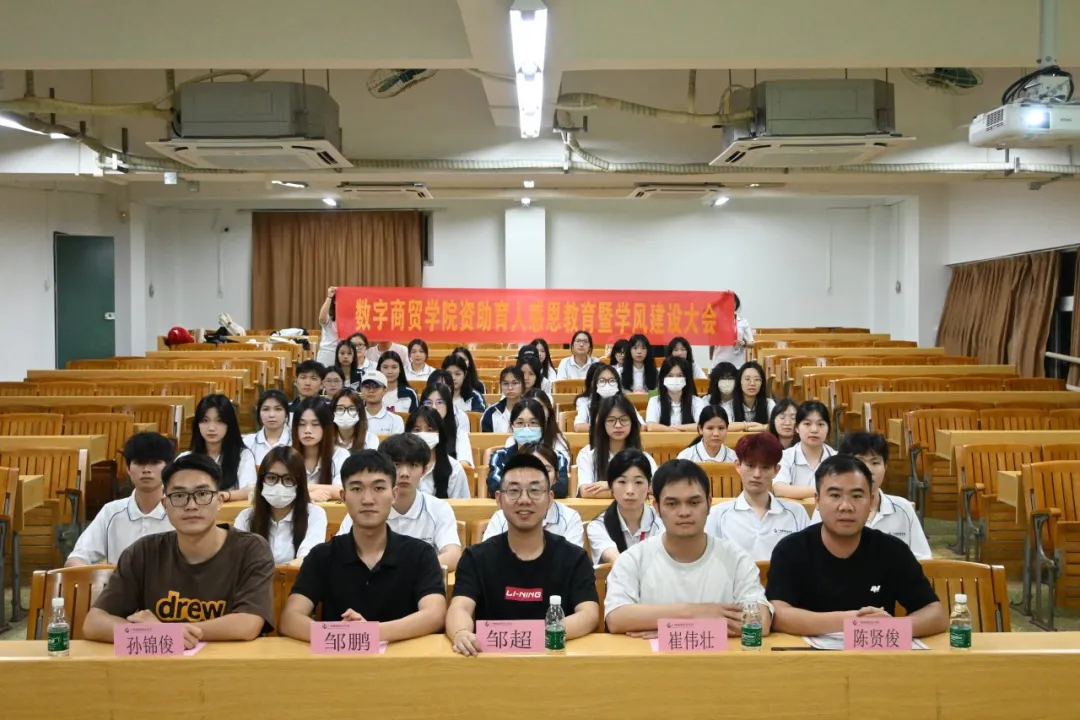 数贸榜样人、优秀学生代表黄文森和欧阳小兰进行了分享交流。他们结合自身的经历和经验,分享了他们如何在资助政策的帮助下努力学习,奋发向上,成为新时代的优秀青年。他们的感人故事和励志精神,深深感染了在场的每一位同学。
