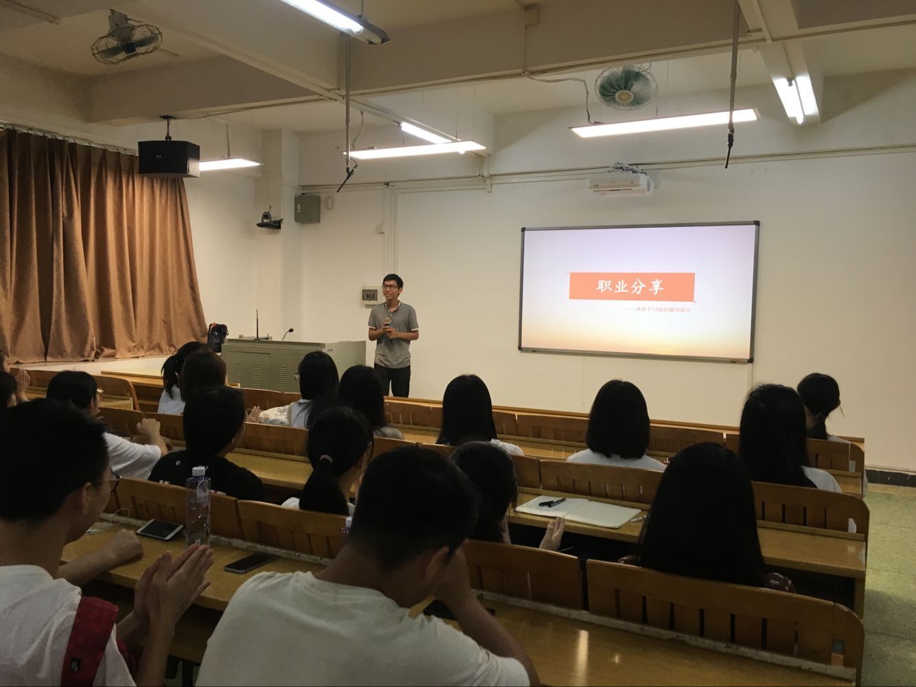 校友黄承浪以个人职业发展经历为切入点,与同学们分享自己的心得体会。他指出,许多大学生应该在入学初期就要做好学习计划,鼓励同学们在校期间要认真学习专业知识和技能,做好基础知识的积累和沉淀,同时积极参与创新创业比赛和各类实践项目,深入学习、拓展并精通一门语言,提升个人的综合素质!