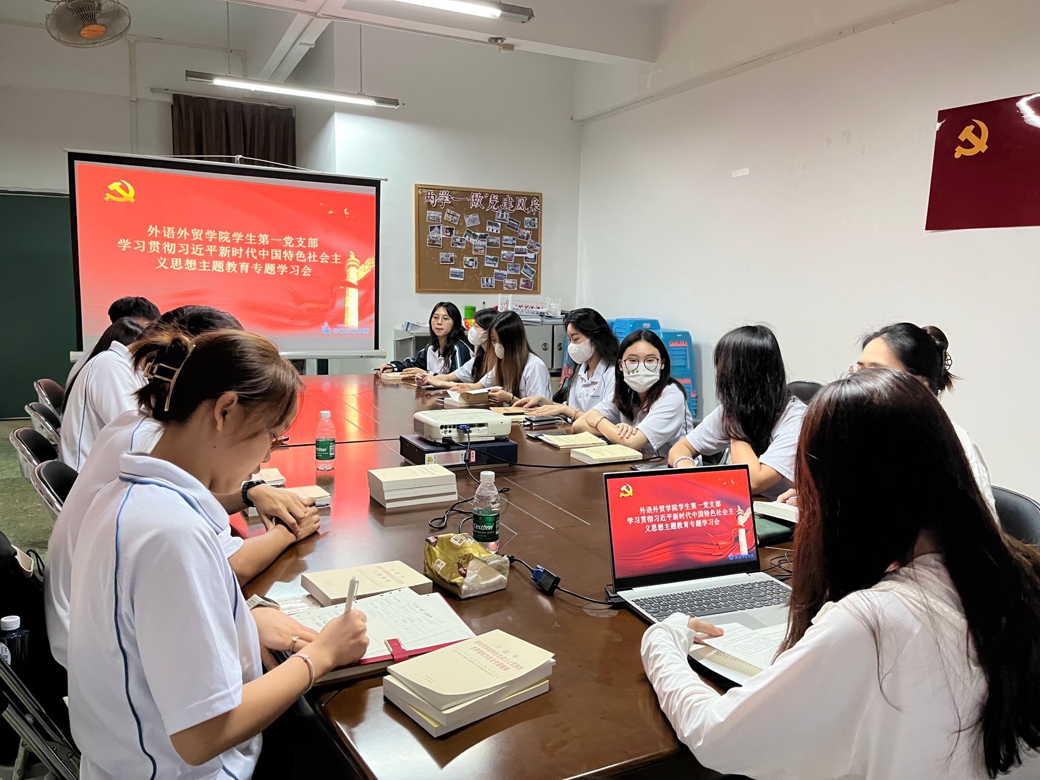 为了深入开展学习贯彻习近平新时代中国特色社会主义思想主题教育,加强学生党员的思想政治教育。5月17日晚,外语外贸学院学生第一党支部在人文艺术楼317开展学习贯彻习近平新时代中国特色社会主义思想主题教育专题学习会。学习会由外语外贸学院学生第一党支部书记龚蝶主持。