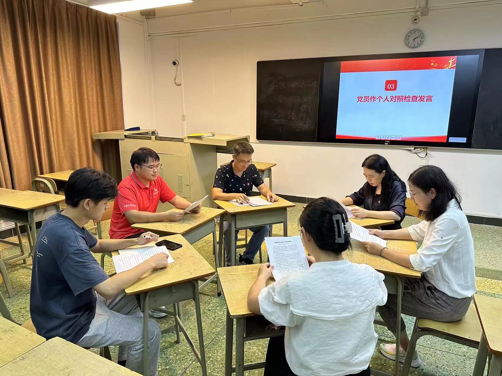 会上,刘宁同志通报专题组织生活会准备工作情况并代表支委会班子作对照检查发言,总结梳理国贸高水平专业群党支部主题教育开展情况,指出问题,剖析原因,明确方向。随后,全体党员同志结合工作实际进行对照检查,重点围绕“理论学习、政治素质、能力本领、担当作为、工作作风、廉洁自律”等六个方面开展批评与自我批评,剖析原因,提出整改措施。