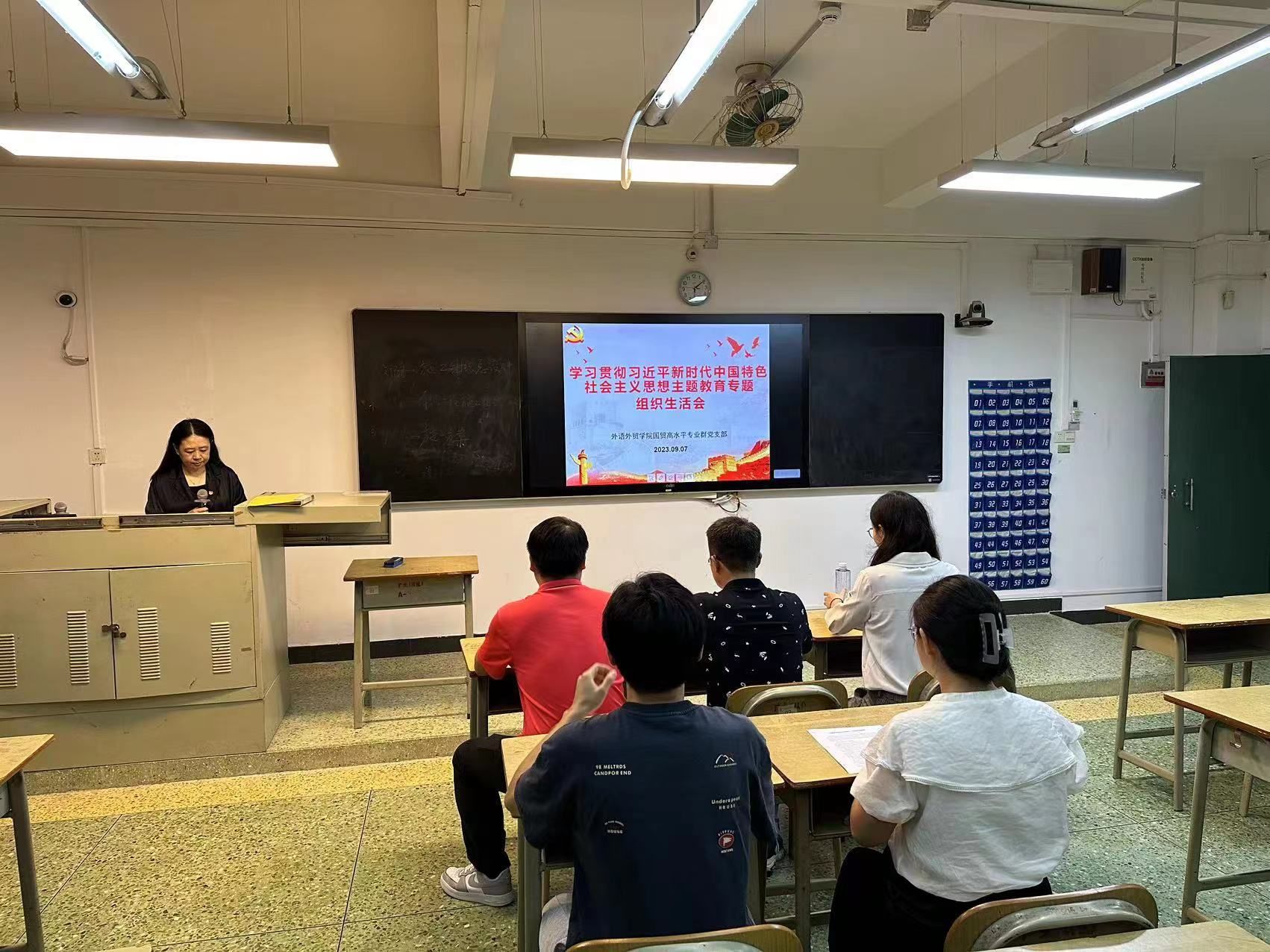 9月7日下午,外语外贸学院国贸高水平专业群党支部在人文艺术楼1307开展学习贯彻习近平新时代中国特色社会主义思想主题教育专题组织生活会。会议由党支部书记刘宁同志主持,国贸高水平专业群党支部全体党员参加此次会议。