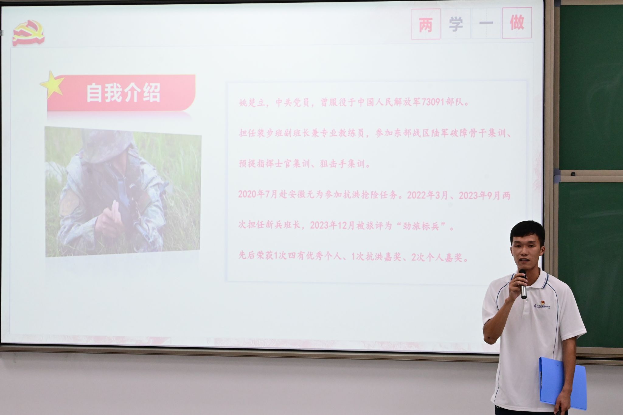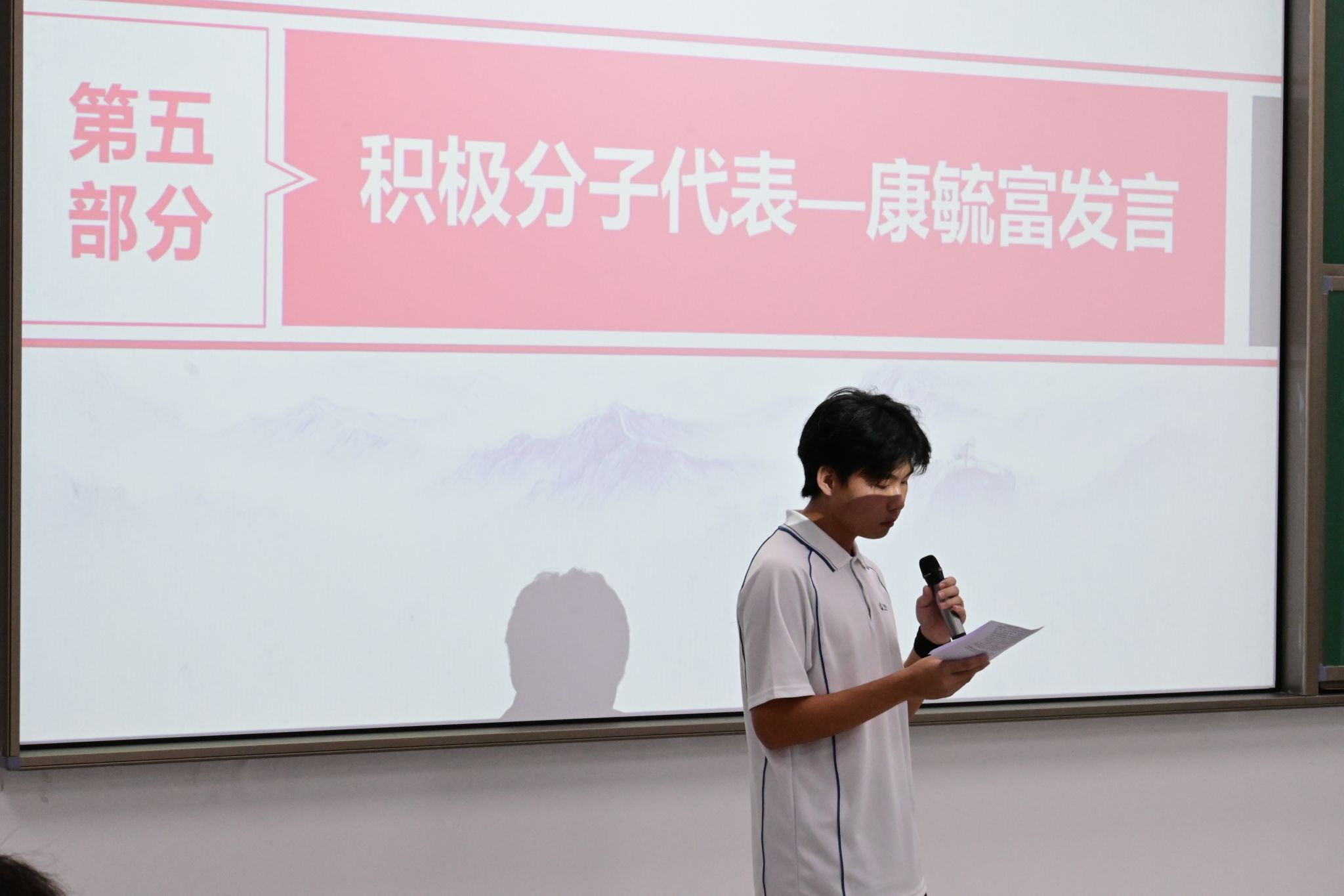 入党积极分子代表康毓富同学作了交流发言。他说到:“领取这本‘六个一工程’活动证,是大家发展党员的起点,也是大家终生学习的开始,我们要以更高的标准来要求自己,进一步坚定初心,坚守初心,以实际行动接受党组织的考验,积极向党组织靠拢,争取早日成为一名光荣的共产党员!”