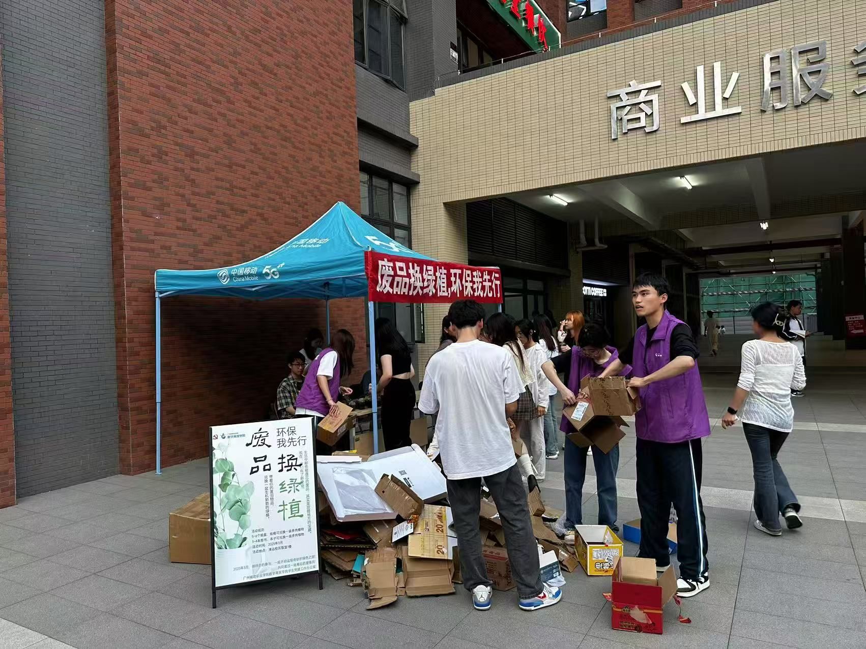 3月7日-4月2日,学院党委组织开展“废品换绿植,环保我先行”活动,此活动持续进行了一个月,吸引全校师生参与,共收集可回收废纸60余公斤,塑料瓶200多个,兑换绿植500余盆。活动现场设置环保知识宣传展板,党建学生干部结合实例讲解垃圾分类意义。通过收集废空瓶、废纸箱等可回收物品兑换绿植多肉小盆栽,让闲置资源流动起来,让春天的绿意盎然满溢校园,让绿色低碳、环保、可持续发展的理念在同学们心中生根发芽,实现“旧物焕新芽”。