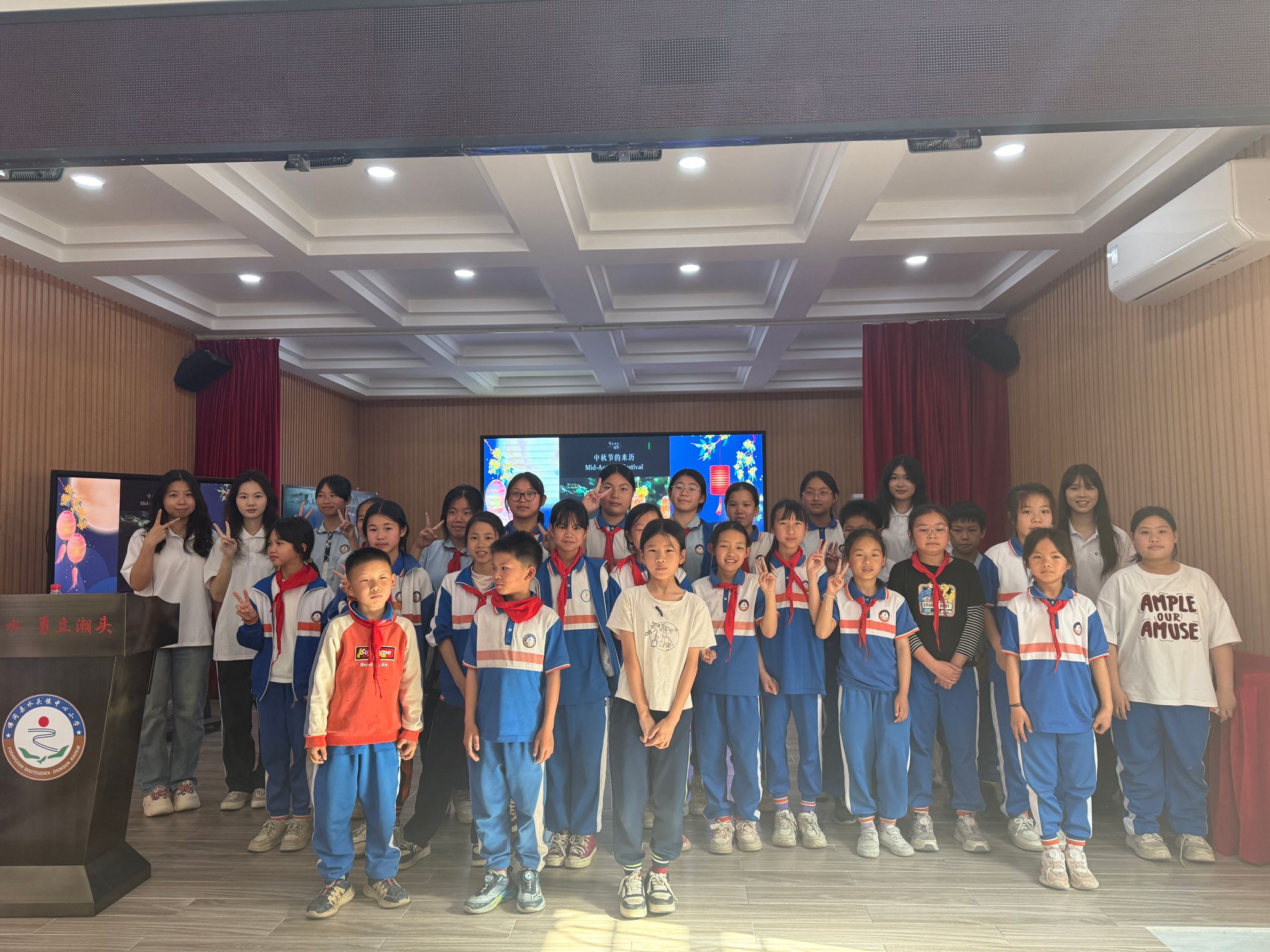 在教学活动结束后,支教团队向积极参与的学生分发了可爱的小礼品和小零食,并与全体参与师生合影留念。此次支教活动创新性地将传统文化元素融入英语教学,既提升了乡村学生的英语学习兴趣,又增强了他们的文化认同感,实现了语言能力培养与文化传承教育的有机结合。