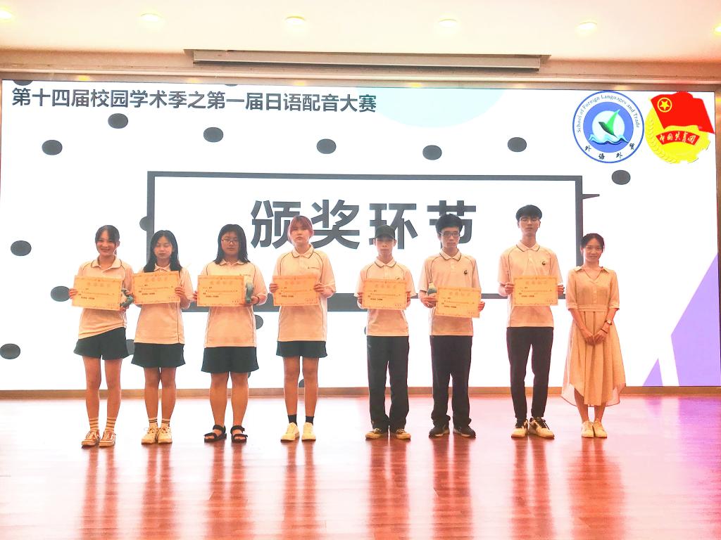 入围选手在决赛现场展现了扎实的日语基本功、丰富的表现力和良好的综合素质,整体配音质量精湛,得到评委和观众的一致好评。彭灏峻同学的《3年A班》将比赛推向了高潮,选手们标准的发音,流畅的表达,惟妙惟肖的配音,为大家带来了一场视听盛宴。大赛最终评出一等奖一组,二等奖两组,三等奖三组,优秀奖三组。