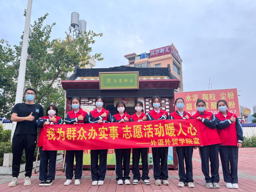 为深入推进党史学习教育,走进群众、服务百姓,外语外贸学院青年志愿者联合分会在院团委书记孙锦俊老师组织下,于10月31日下午在从化地铁站A出口、从化汽车站开展了“我为群众办实事”志愿服务活动。