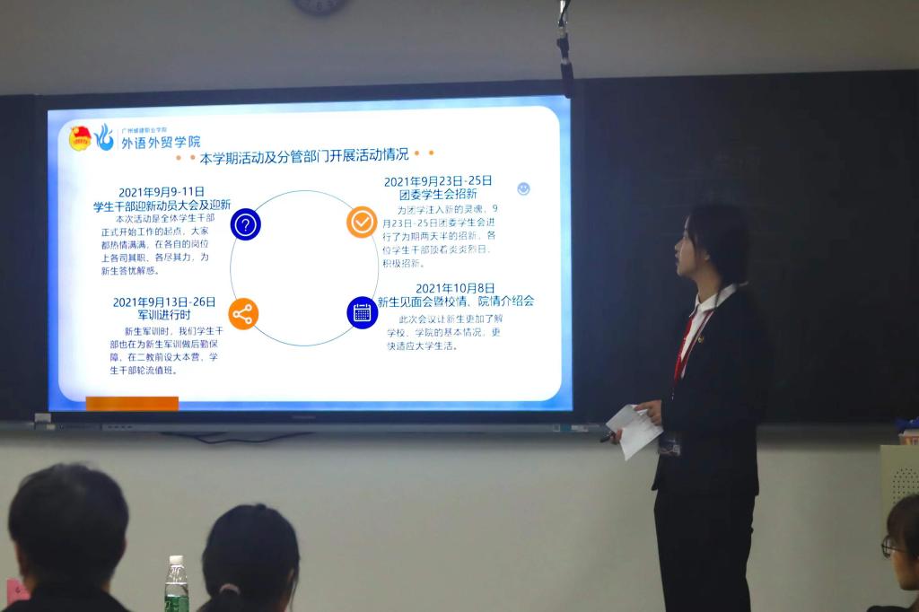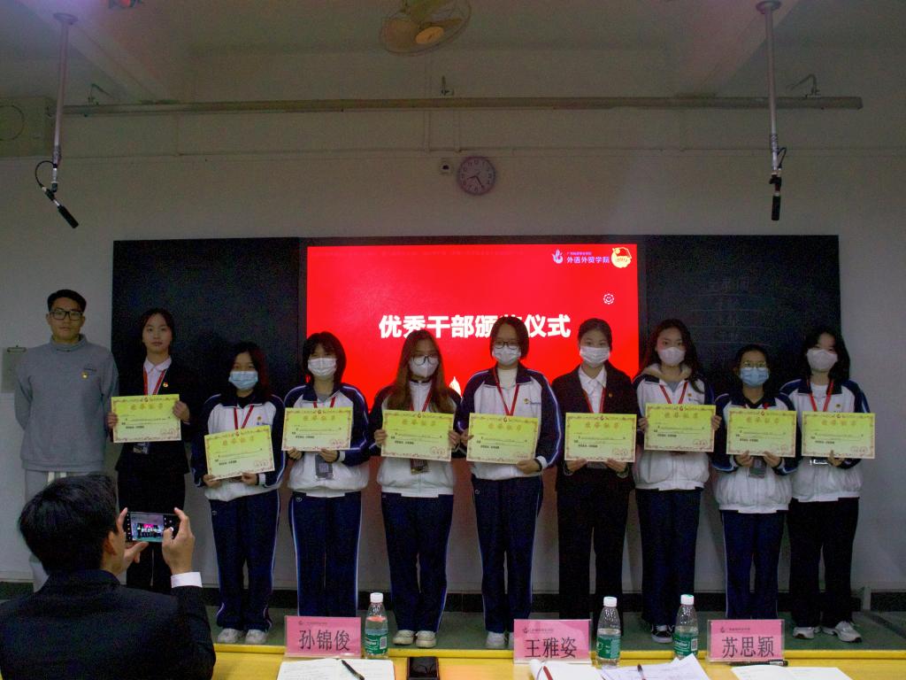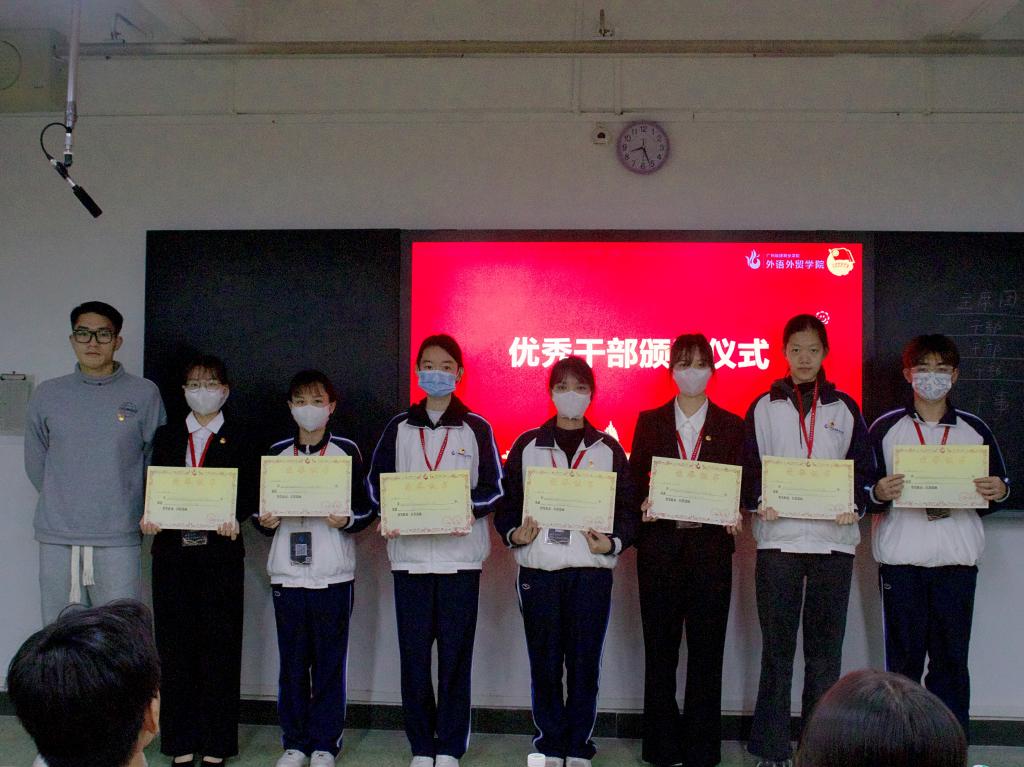 12月29日晚,外语外贸学院团委学生会2021—2022学年第一学期期末总结大会暨表彰大会在1318隆重召开,外语外贸学院团委书记孙锦俊、院第三届第一任团委、第六届学生会主席团成员以及全体优秀干部、优秀干事出席大会。