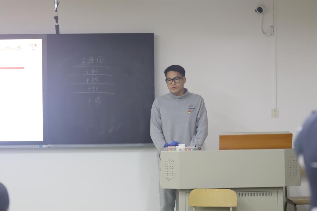 接着,由第三届第一任团委、第六届学生会主席团成员做本学期团学工作汇报,她们从团员思想建设、干部队伍建设、科技学术活动与社会实践和权益服务及特色品牌活动四个方面进行详细地汇报。本学期团学所推出的主题团日活动、学生干部干事培训以及对团员的思想引领工作、基层团组织建设都取得了良好的成效,接着她们对工作中的不足之处进行了总结反思并且提出了后期具体的改进措施。最后孙锦俊为本学期优秀部门及个人颁奖并告诫大家无论身处何职、都要力争优秀。