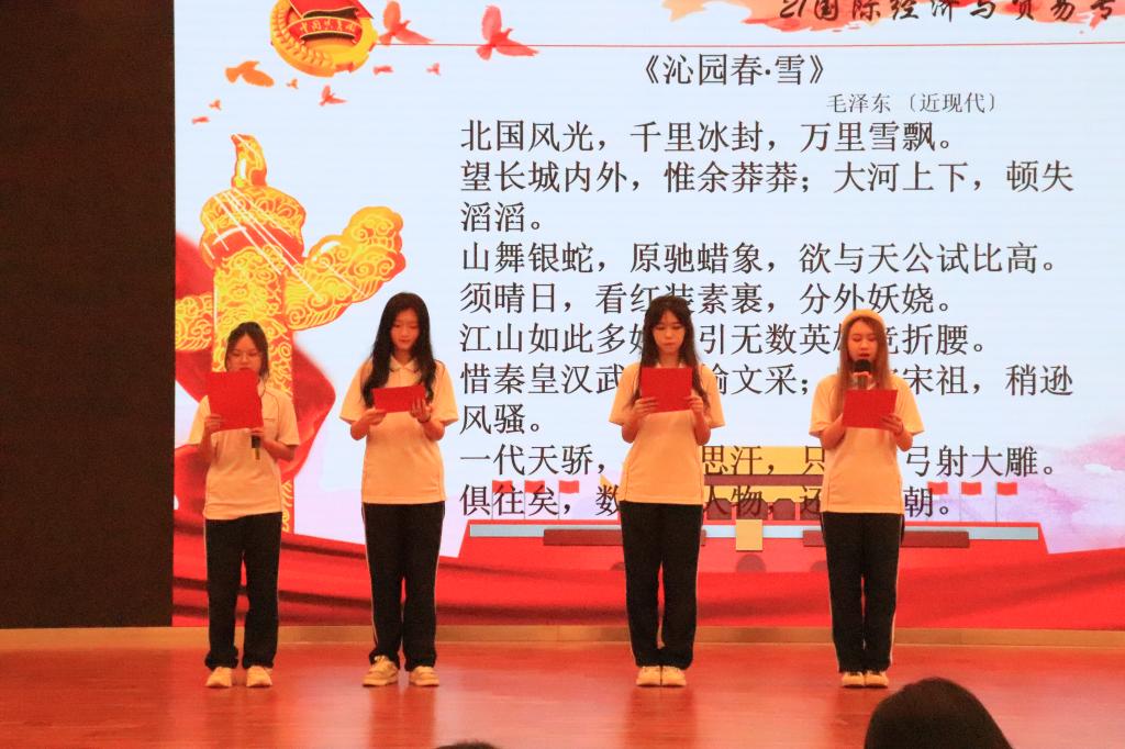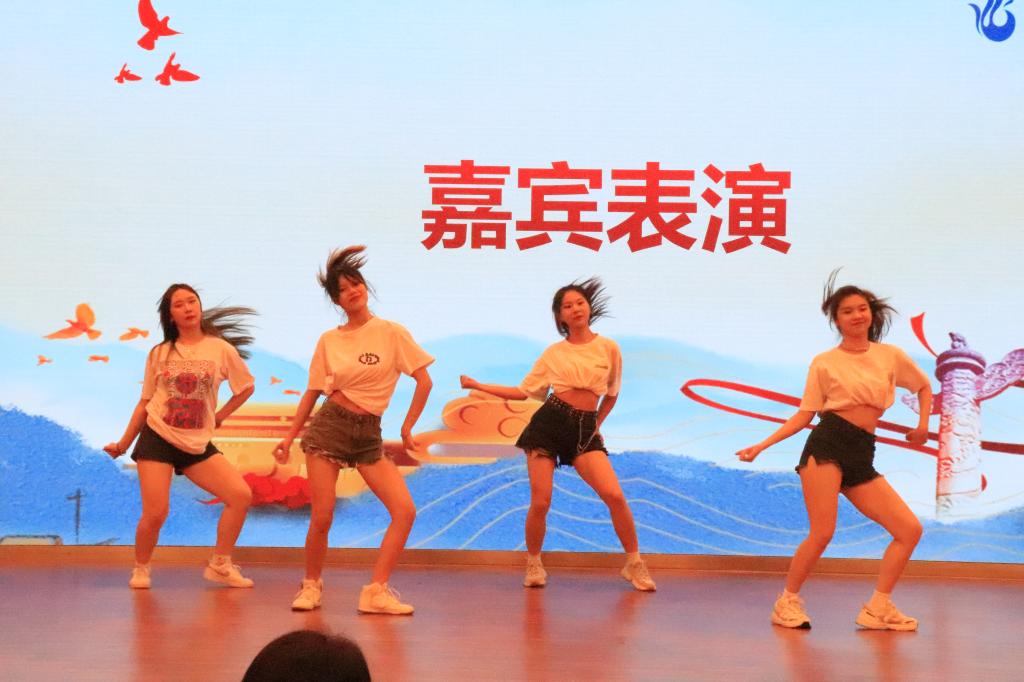 在10个团支部汇报结束后,特邀嘉宾校舞蹈队给我们带来了精彩绝伦的舞蹈表演,婀娜多姿的手法、神形兼备的脚步,将大赛现场氛围推向了高潮,全场欢声雀跃。