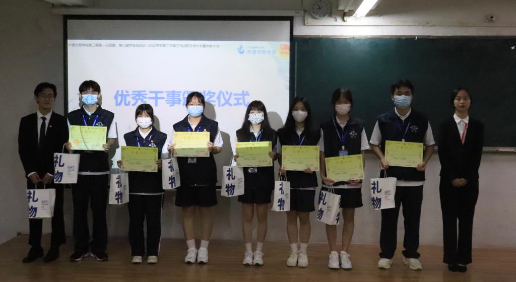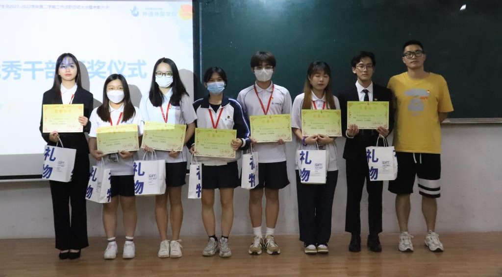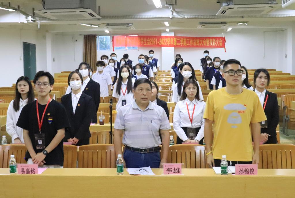 6月24日晚,外语外贸学院团委学生会2021—2022学年第二学期期末总结大会暨表彰大会在1205隆重召开,特邀嘉宾李雄教授、院团委书记孙锦俊、院第三届第一任团委、第六届学生会主席团成员以及全体优秀干部、优秀干事出席大会。