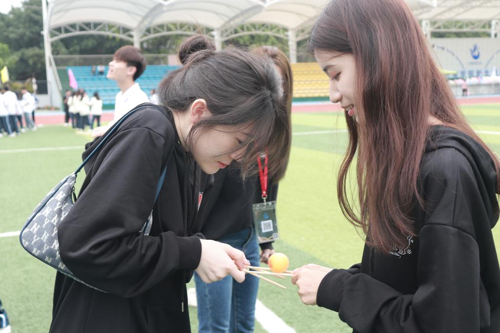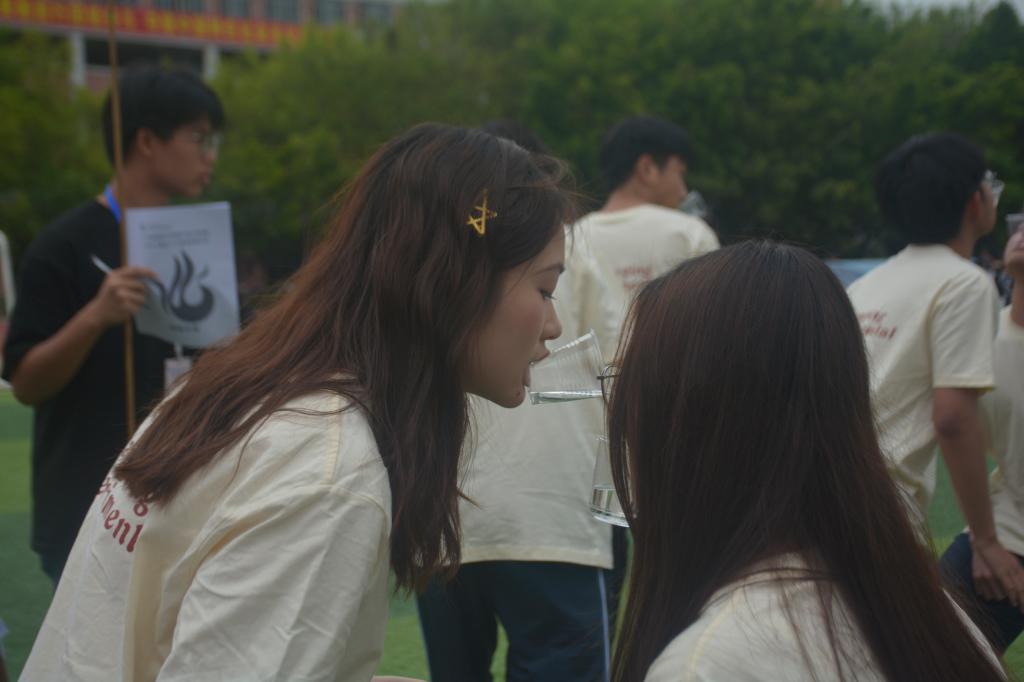 接着进行班级风采展示。各班级各出奇招,在有限的时间里,舞蹈、歌曲、演唱轮番展示,每个精彩的表演都传递着班级的凝聚力与创造力。紧接着,在素拓教练的指导下、主持人的调动下,全体2022级的同学们进行了“破冰之旅”“筷子夹乒乓球”“十人九足”“指压板跳大绳”“杯水传递”等多项凝聚班级力量、展现自我能力、体验团队协作精神、提高学生心理素质的素质拓展活动。
