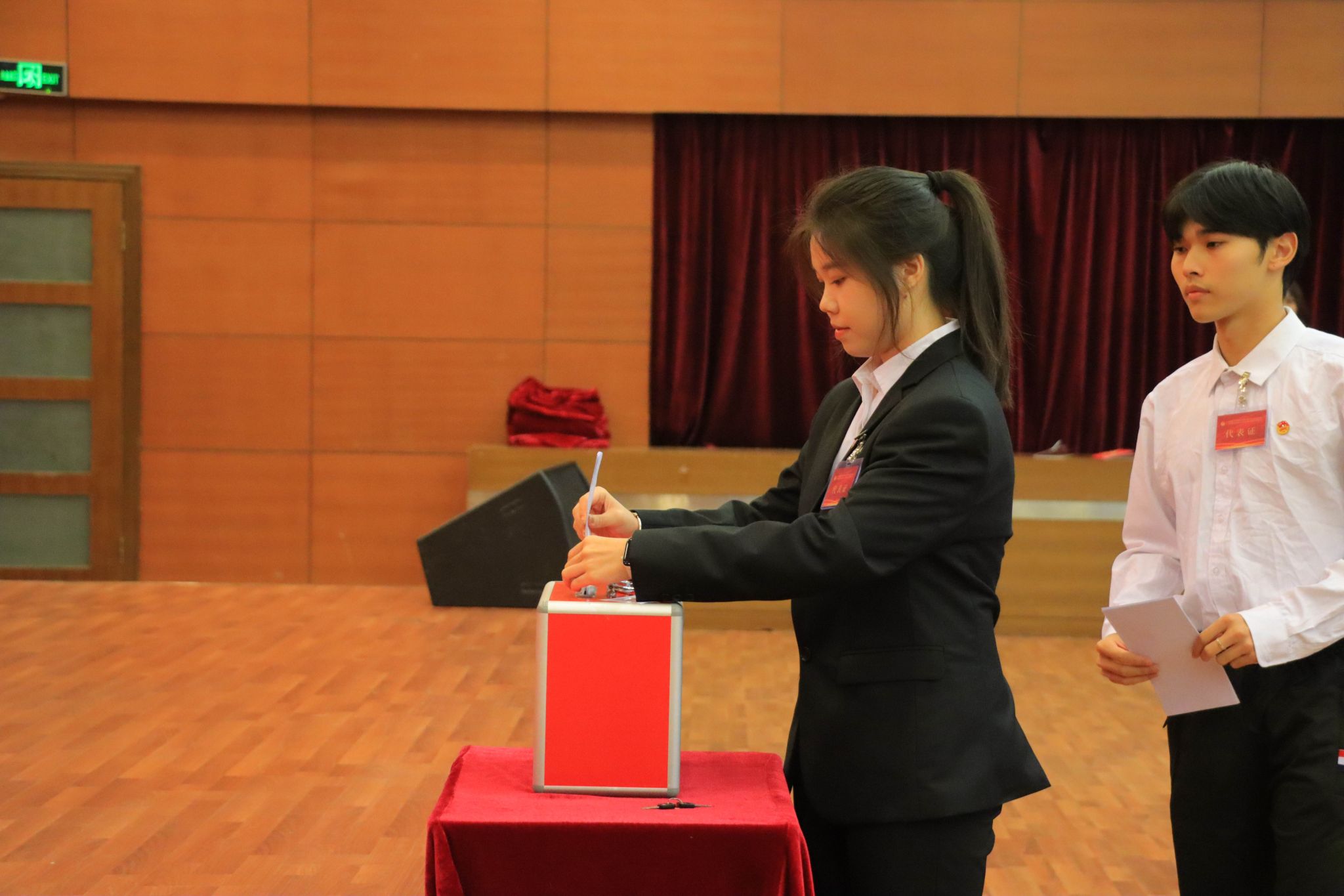 学院团委学生副书记丘雨雨同学代表学院团委向大会作题为《高举旗帜跟党走,聚力青春勇担当》的工作报告。报告以两大部分四大板块全面总结回顾了学院团委在过去三年里围绕思想引领、支援实践、文化建设、从严治团等方面取得的成绩,并分析了工作中发现的问题,明确了今后团委的工作目标与努力的方向。