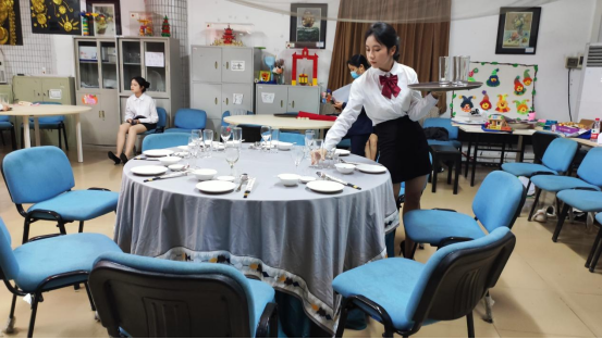 本次大赛分为礼仪展示、英语朗读和中餐厅服务摆台三个主要环节。参赛选手经过了一段时间的礼仪训练和餐厅技能训练,均能以最佳状态拿出自己的真实水平同台竞技。摆台过程中,选手们操作规范、动作娴熟、展现了服务人员的专业水平,评委们也针对选手们的操作细节和整体表现进行了严格的评分。最终来自21会展班的尤晓真同学获得了大赛一等奖,黄壹心和邓欣悦同学获得了二等奖,霍逸怡、郑馨怡、苏颖欣三位同学获得了大赛的三等奖。
