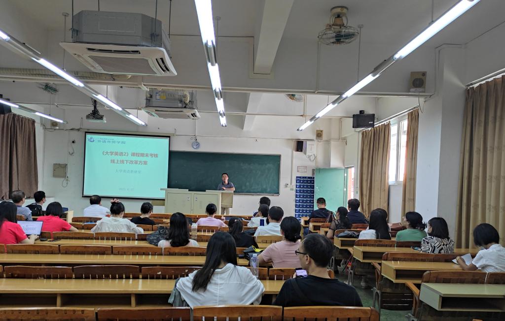 会上,教研室主任张大增对《大学英语2》课程的期末线上考试进行说明,并向所有大学英语课程组的老师们详细传达了期末考试监考、期末成绩录入以及试卷管理的相关要求,希望各位老师按要求落实到位。同时,在第17、18周考试期间,大学英语教研室将在教学楼安排教师巡考,负责解决期末考试期间突发情况。最后,研讨会邀请了翁翠老师对所有老师进行“学习通”平台考试操作的培训。