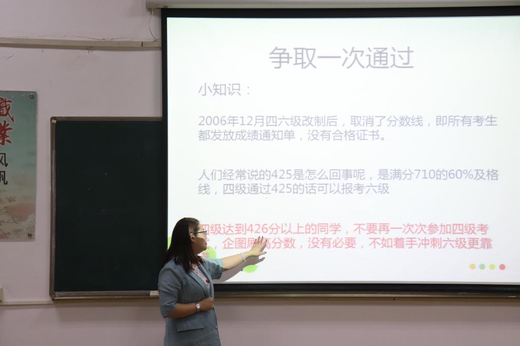 这是一次鼓舞人心、知识量巨大的交流会,为6月份冲击四六级的同学们吹响了冲锋的号角,提升了整体的士气。会后,同学们纷纷表示,此次交流会非常成功,使大家受益匪浅,会以百分之百的热忱向四六级证书发起冲击。