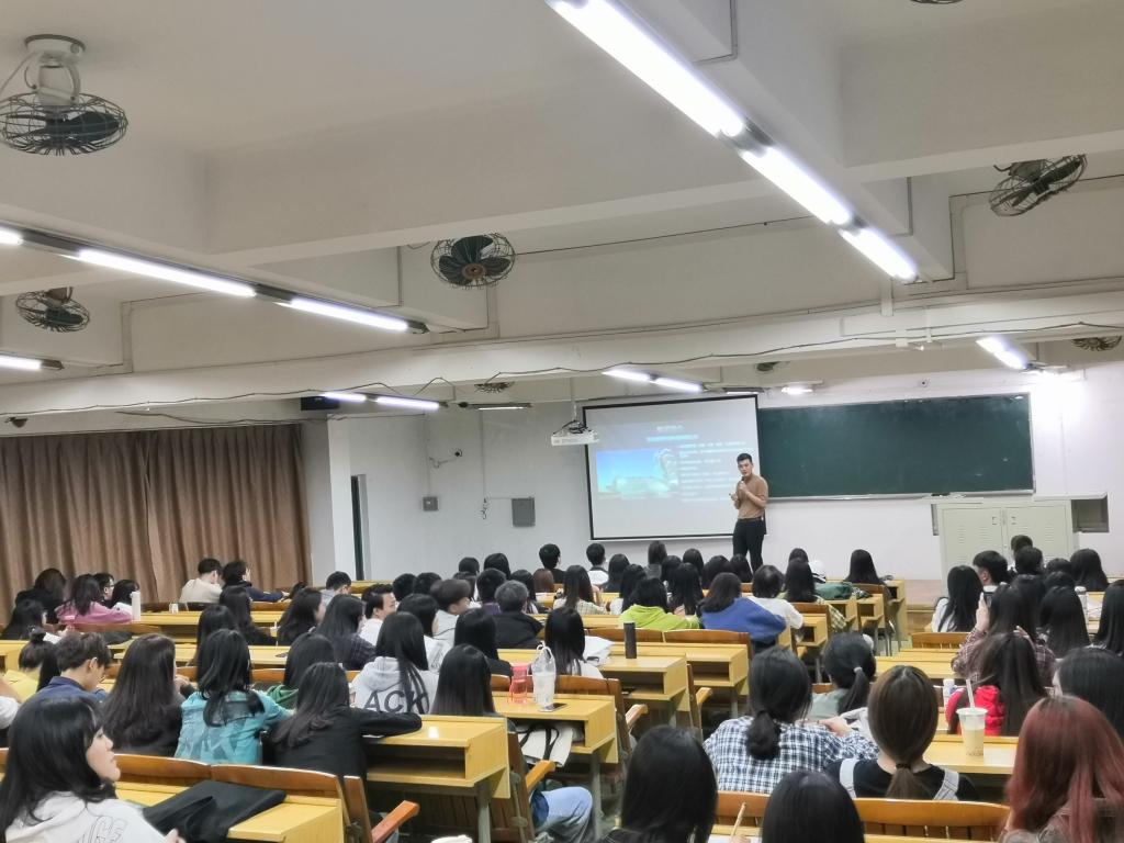 10月29日晚,深圳领袖集团董事长牛付印一行在我校人文艺术楼205室举行专场招聘宣讲会,外语外贸学院副院长李霜、商英教研室主任张大增、辅导员崔伟壮及200多位学生参加了宣讲会。