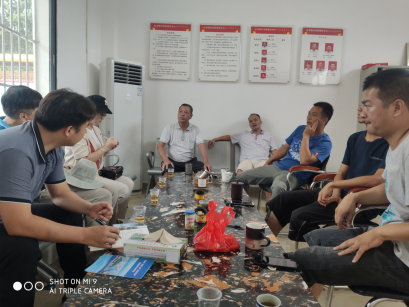 8月11日下午,调研组一行来到江湾镇梁屋村开展调研走访和挂牌工作。受到村支部陈来华书记和村委委员的热烈欢迎。在座谈会议上,陈书记首先介绍了梁屋村的人口、耕地面积、农产品种养、特色资源等基本情况,农村科技特派员也就其中的红薯销售现状提出了自己的疑惑和建议,双方在红薯分销和深加工、部分发展林下经济、小规模旅游引流上达成共识,并就接下来的合作提出了部分设想。