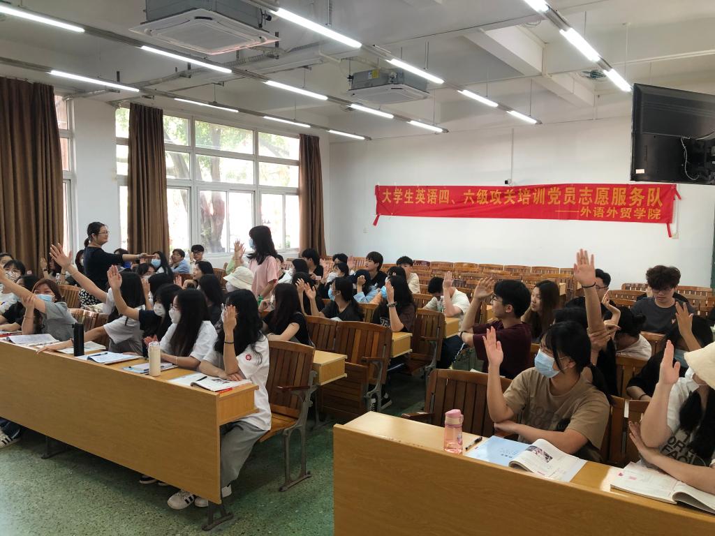 2021-2022学年第二学期,外语外贸学院教师党支部为了进一步解决广大学生的“急难愁盼”问题,提高涉外专业全体学生四级考试通过率,教师党支部挑选刘宁、刘婕、翁翠、黄瑞娴、陈映璇、岳文倩六名教师党员组成大学生英语四、六级攻关培训党员志愿核心服务团队,对国贸、跨境、会展三大涉外专业的185名学生进行了培训。