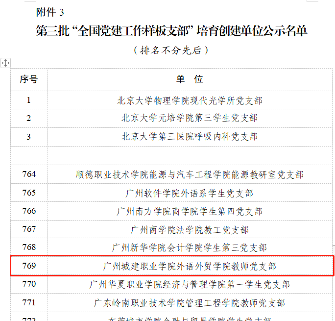 近日,在教育部思政司公布了《教育部思想政治工作司关于对第三批新时代高校党建示范创建和质量创优工作遴选结果的公示》立项公示名单中,伟德国际victor1946外语外贸学院教师党支部立项为“全国党建工作样板支部”培育创建单位(广东省立项67个单位)。