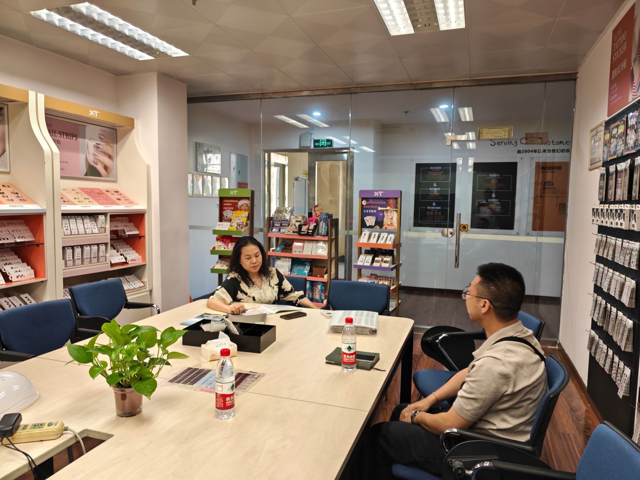 廖静宜首先对学院一行的到来表示热烈欢迎,并详细介绍了广州显泰工艺制品有限公司的发展历程和业务现状。据悉,该公司成立于2004年,是一家集生产、外贸、内销为一体的综合性品牌化妆品企业,专注于美甲、纹身类贴纸等产品的研发与生产,随着公司的不断发展,对主播、摄影、新媒体运营、美工、外贸等岗位的人才需求日益迫切。同时,廖静宜表示,公司非常期待与学院加强校企合作,希望通过深度合作参与到学校的人才培养过程中,为培育符合公司岗位需求的储备人才奠定基础。