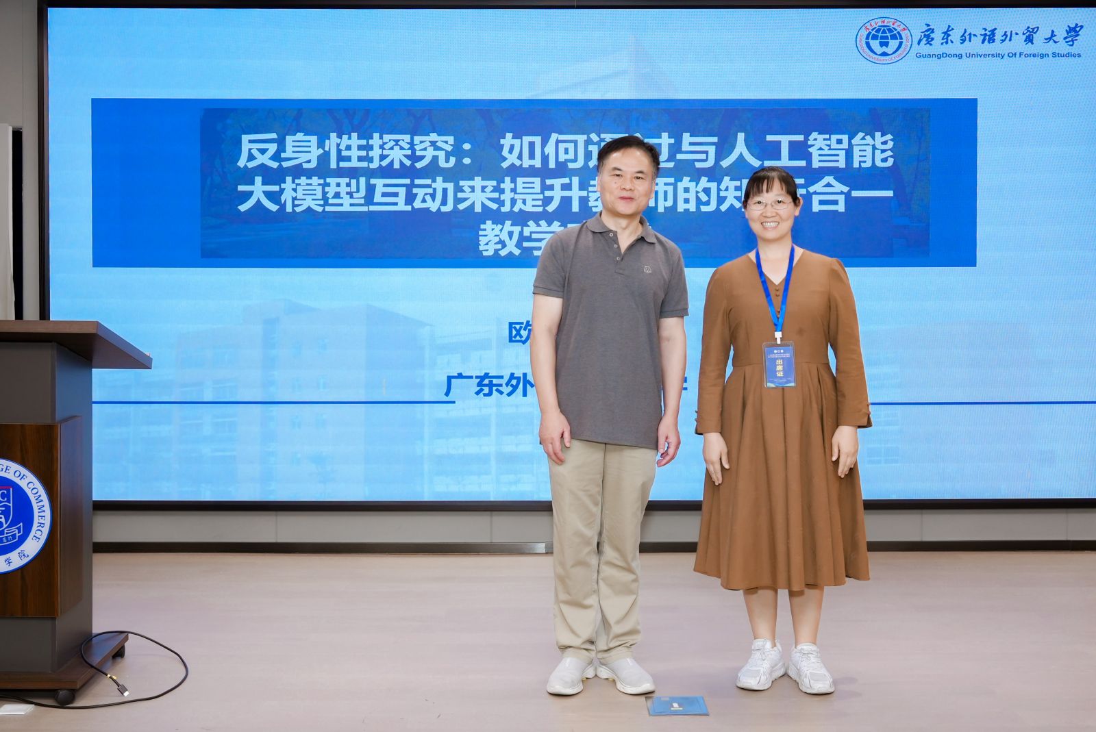 会议在四个报告厅同时进行四场平行论坛,邹菊花参加了外语教学研究论坛。广东外语外贸大学欧阳护华教授的演讲探讨了一线英语教师如何通过与人工智能大模型的积极互动来促进自己的反身性探究,推动和完善自己的日常教学课程模式。