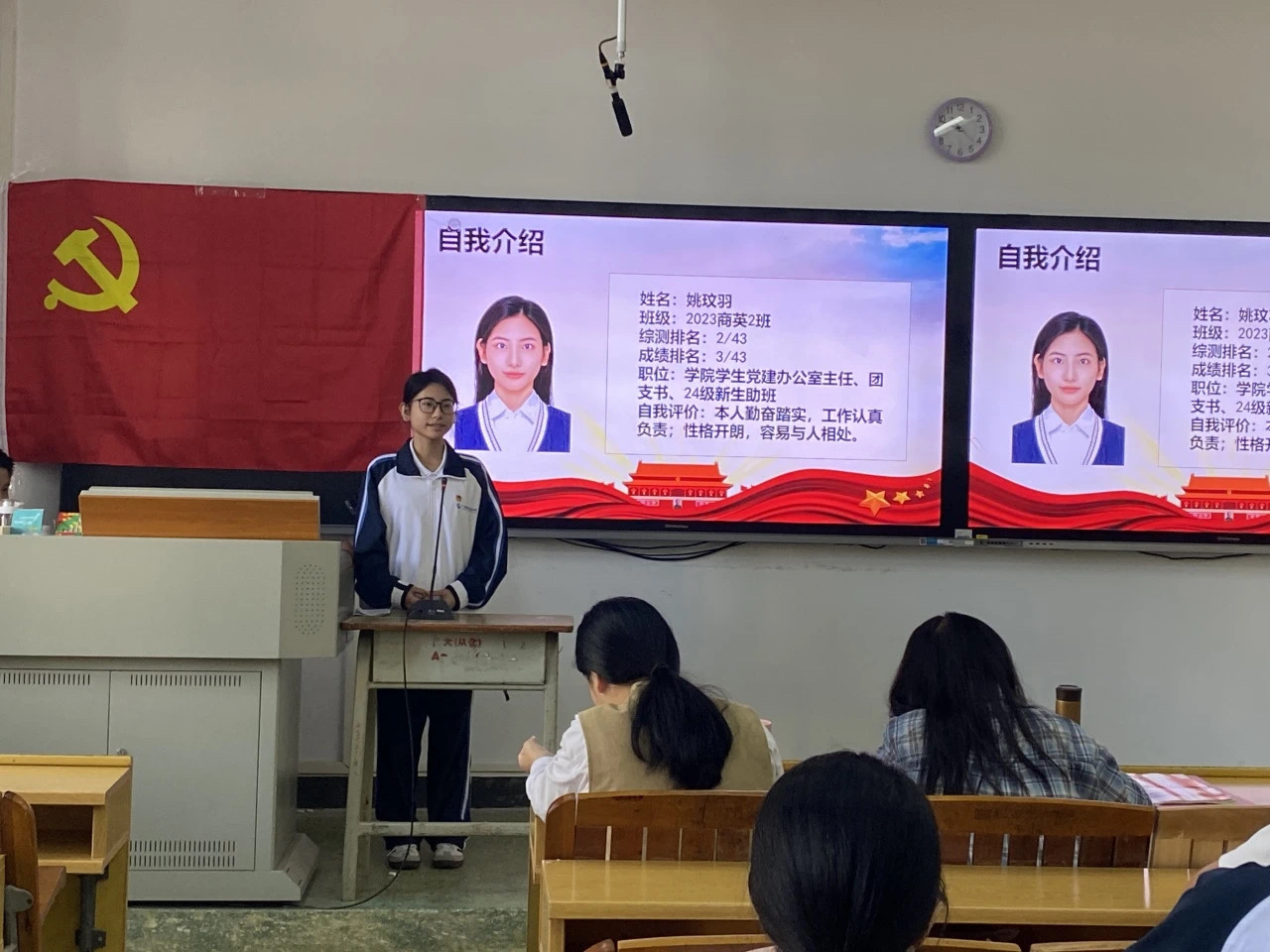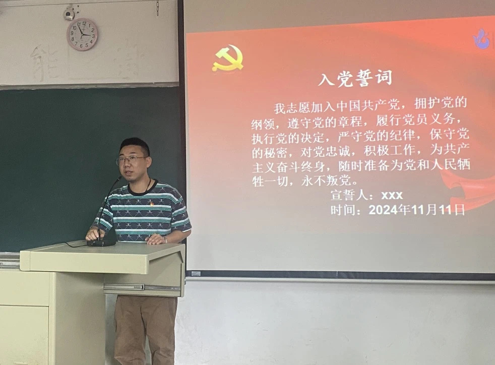 随后,学生第二党支部书记邹超同志带领新发展党员面向党旗进行了庄严的宣誓。本次的通表大会程序严谨,严格按照发展党员的相关规定进行。