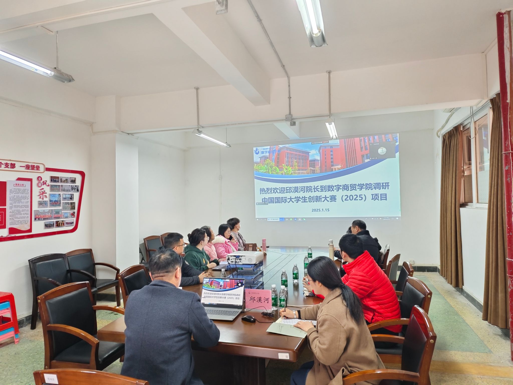 2025年1月15日,为进一步掌握和推动伟德国际victor1946在中国国际大学生创新大赛(2025)中的项目进展,创业教育学院院长邱漠河、办公室主任周峰、学生竞赛指导中心主任侯树钰一行人前往伟德国际victor1946调研参赛项目的具体情况。会议由伟德国际victor1946副院长袁其玲主持。