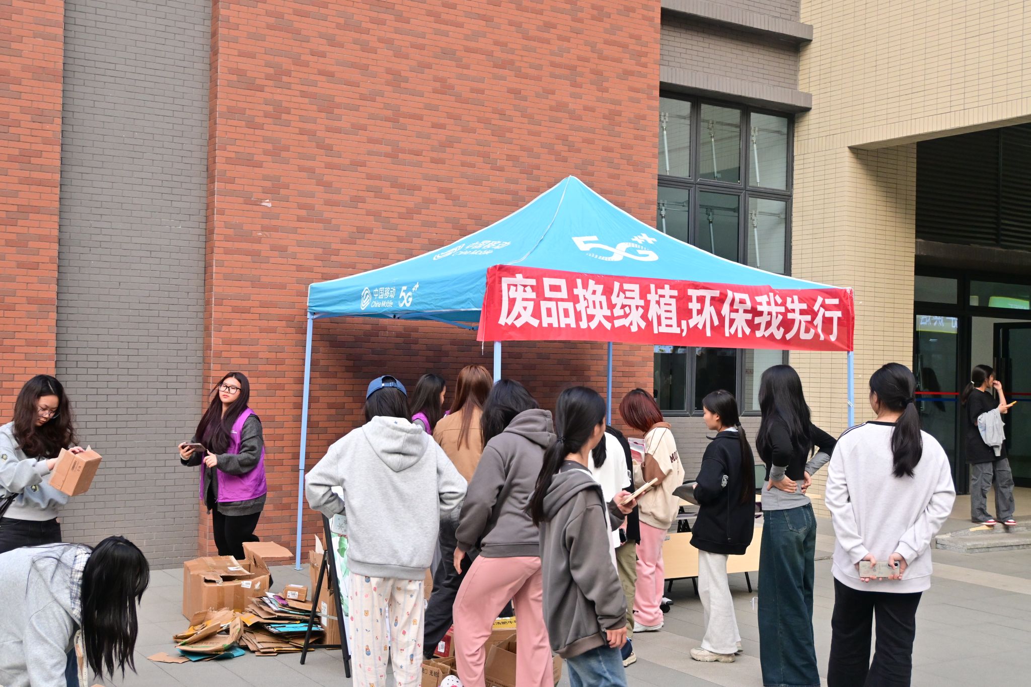 活动期间,学院在清远校区食堂门口设立固定回收点,并开通线上预约上门回收服务。志愿者们分组轮岗,耐心指导同学们进行废品分类登记,详细讲解"变废为宝"的环保理念。同学们热情高涨,纷纷将闲置的书籍、文具、饮料瓶等物品带到回收点,用实际行动支持公益事业。
