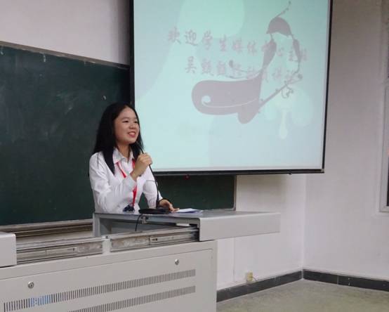 大会在热烈的掌声中拉开帷幕。会上,首先由秘书长李少微上台为大家介绍学生媒体中心的组织架构和发展目标;紧接着,学生媒体中心主任吴甄甄上台致辞,她代表学生媒体中心对加入学媒的所有成员表示热烈的欢迎,并对干部们寄予厚望,希望每个人在接下来的工作中都能知道自己应该“做什么,怎么做”,谦虚学习,踏实工作,努力把学媒推向一个更高的发展台阶。