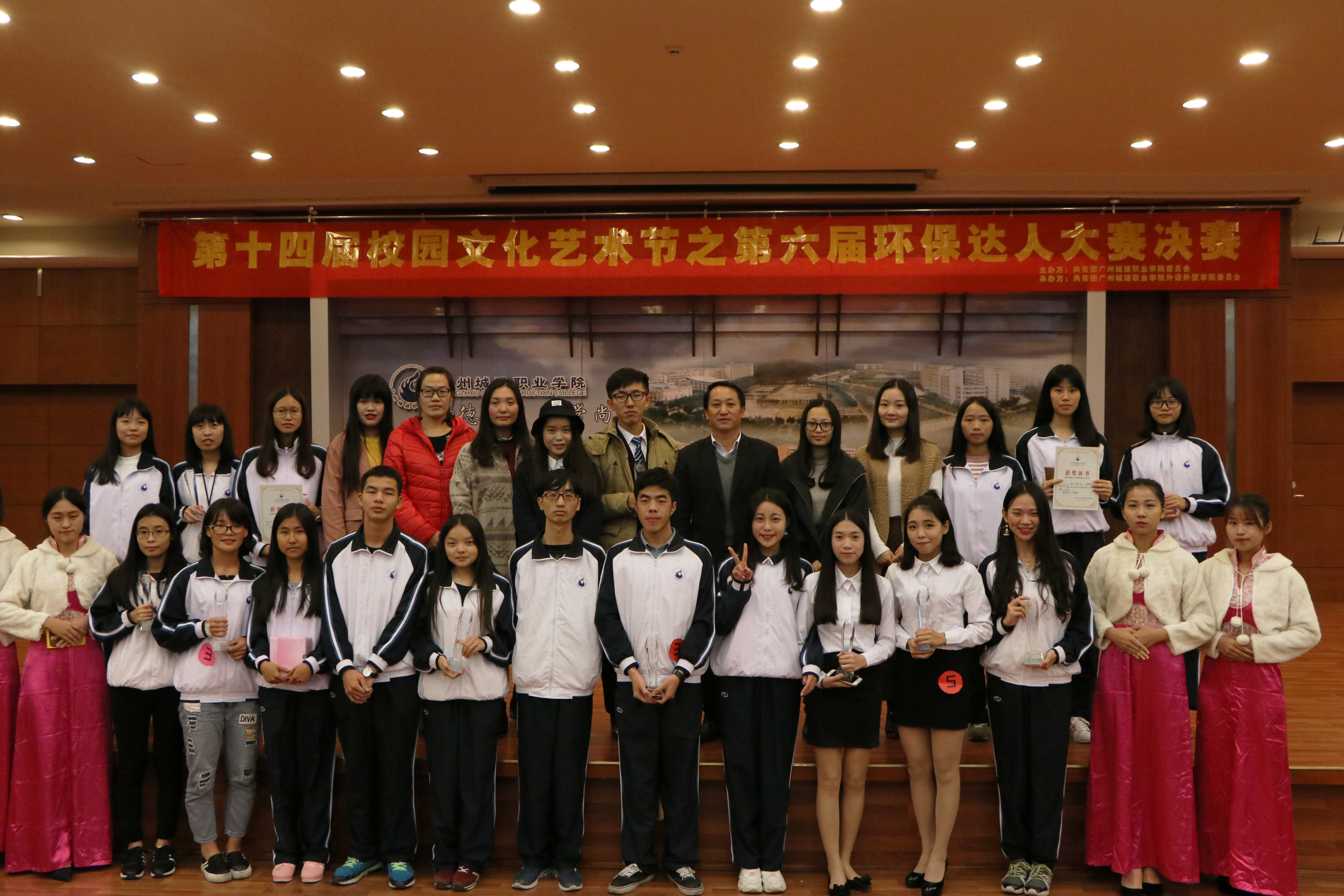 12月1日晚,外语外贸学院在人文艺术楼四楼报告厅举办了以“创新生活 环保在我”为主题的第十四届校园文化艺术节之第六届环保达人创意大赛。外语外贸学院副院长邱漠河、会展教研室彭志韬、张云瑞老师、分团委书记吕淑华、辅导员周惠敏、邓妮妮以及各团学干部和各班代表参加了本次大赛。