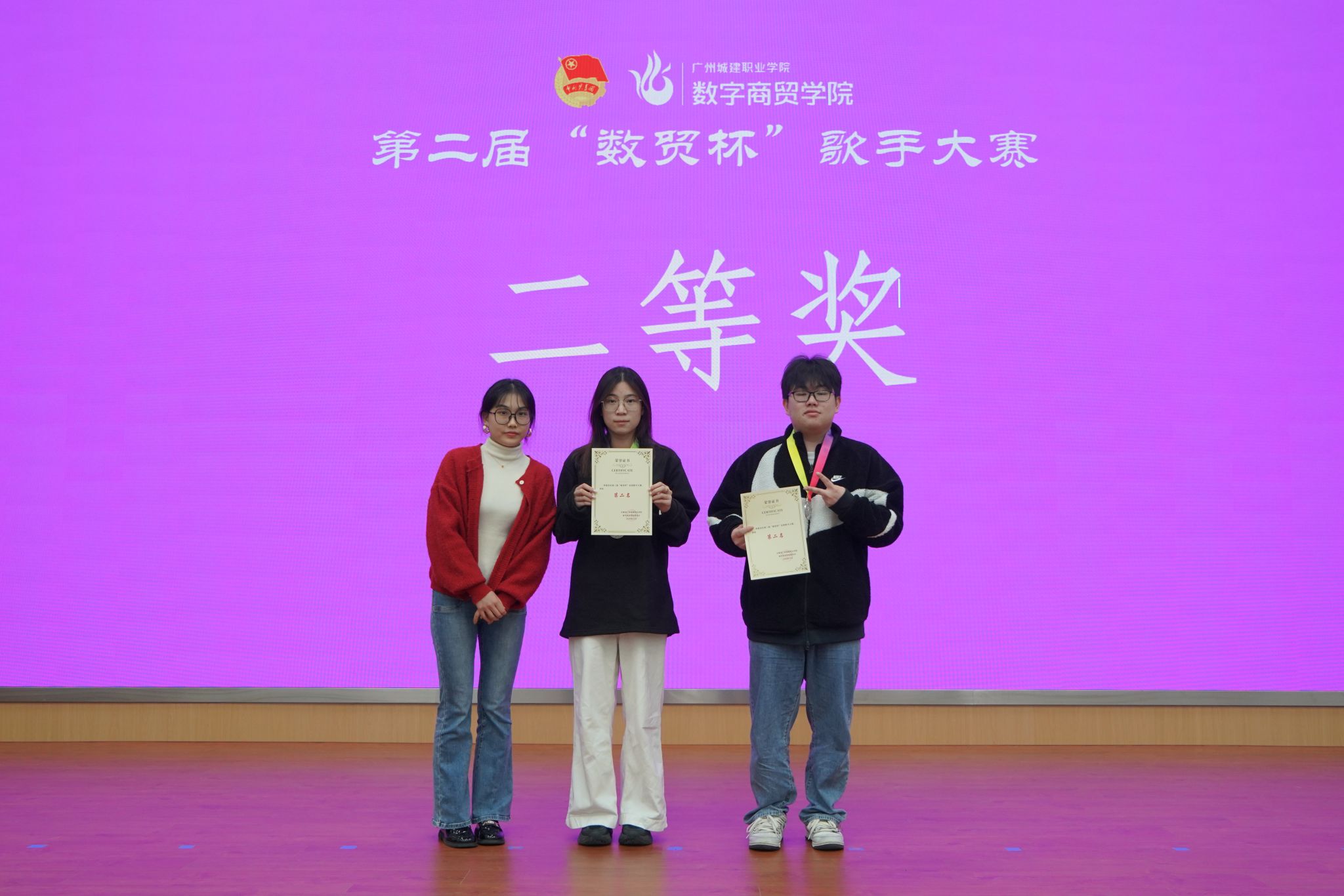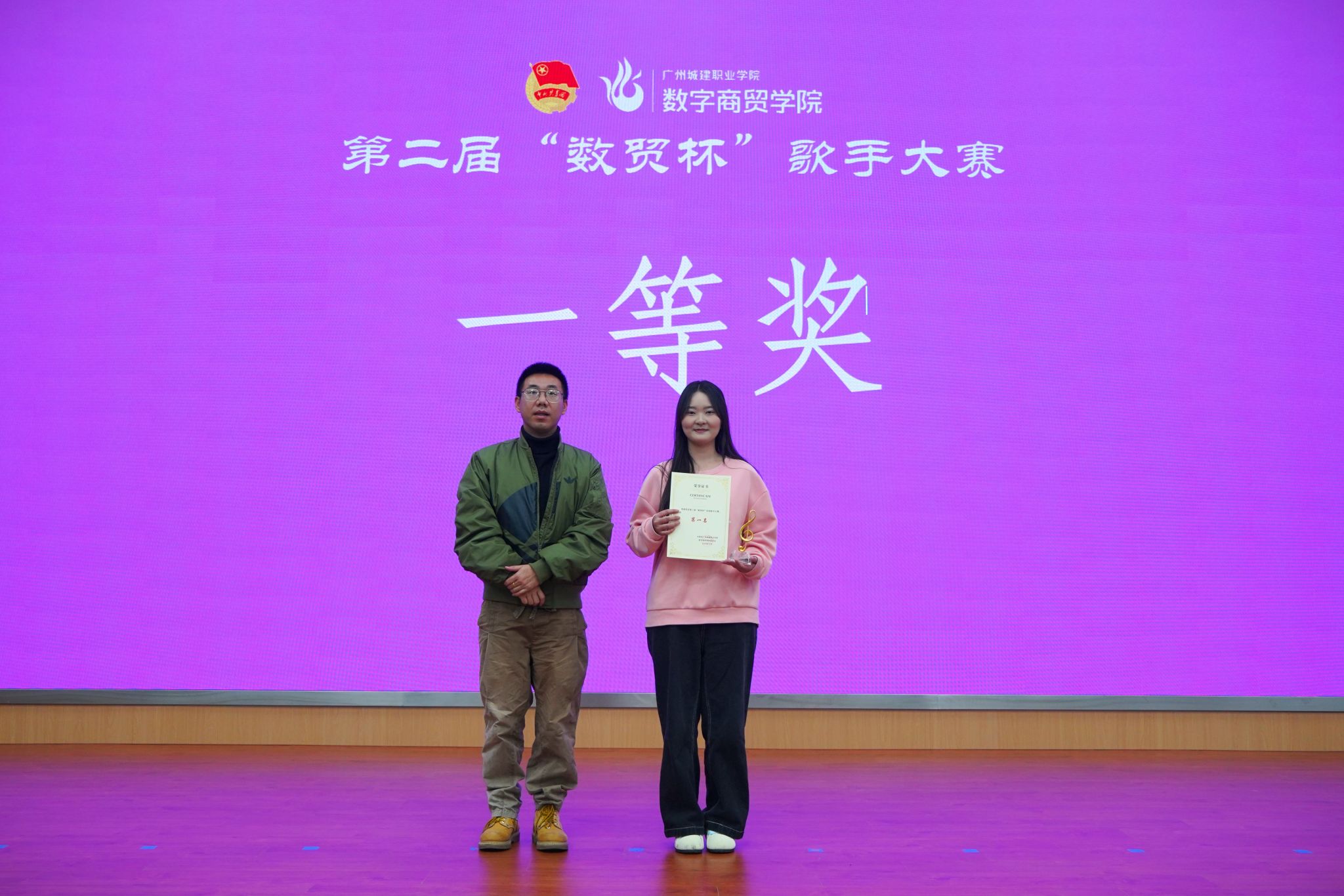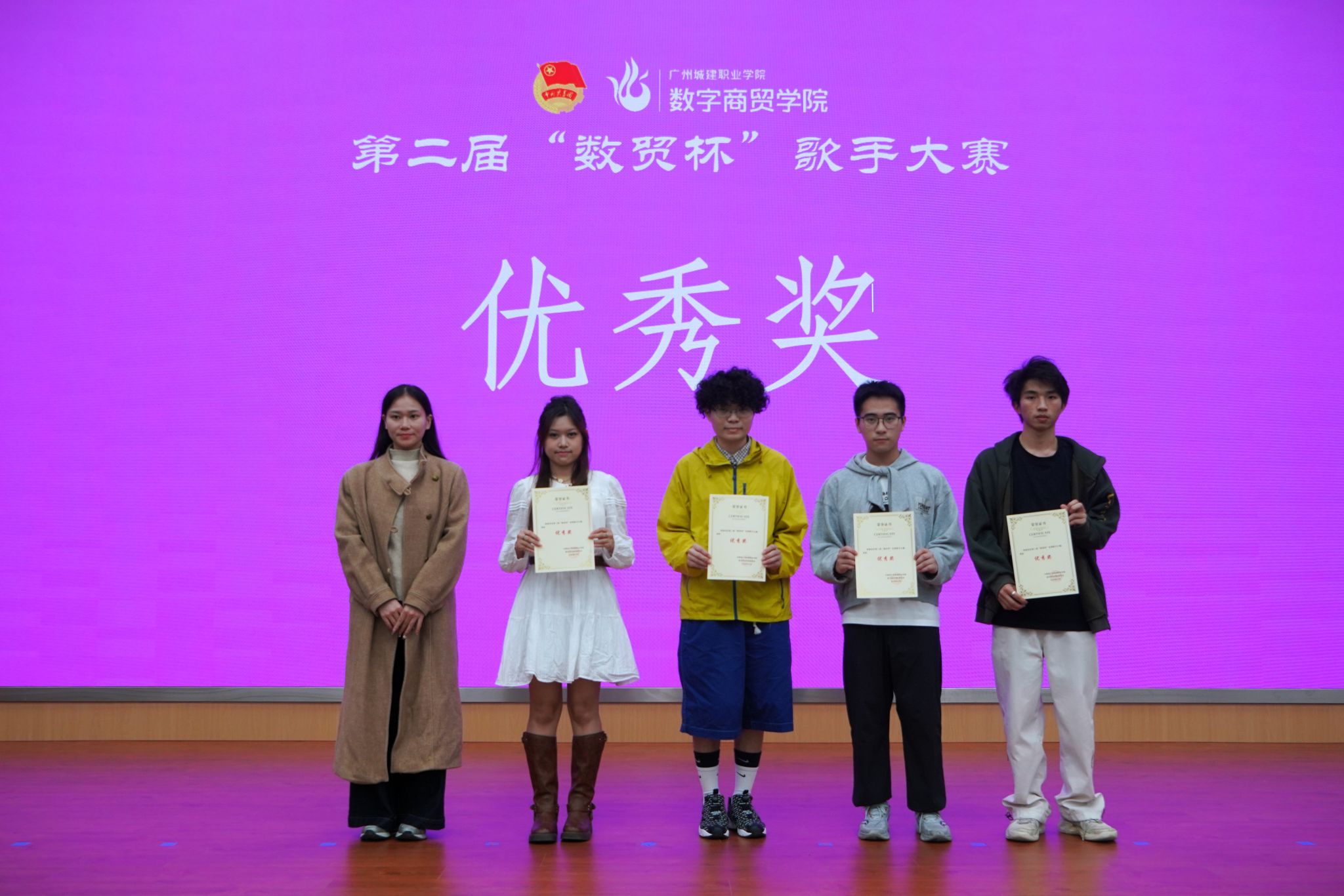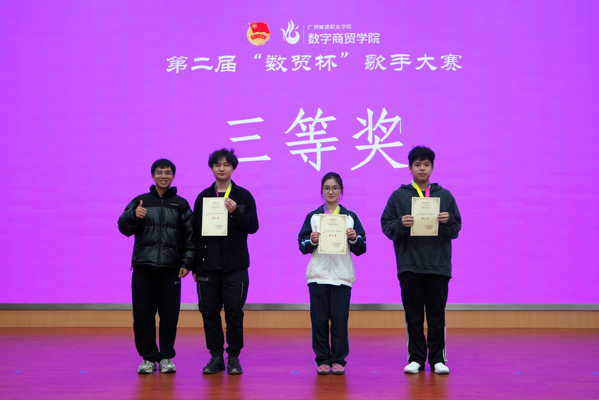 12 月 22 日,伟德国际victor1946第二届 “数贸杯” 校园歌手大赛决赛暨校运会表彰典礼在清远校区图书馆 414 报告厅举行。学院党委副书记、副院长邹超,学院组织员王璐,团委书记邹鹏,心理辅导站指导老师李乐及全体辅导员出席活动,王芷慧、邵艳昀、向家豪、黄亿等四位老师受邀担任大赛评委。
