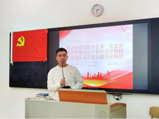 4月27日下午,外语外贸学院学生第一党支部在人文艺术楼1109教室召开2023年4月份“三会一课”主题学习。学生第一党支部学生党员、入党积极分子参与本次会议,会议由学生第一党支部组织委员陈贤俊主持。