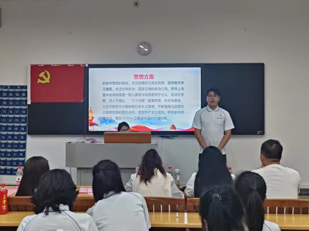 5月6日下午,外语外贸学院学生第一党支部在人文艺术楼1121召开2023年上半年预备党员转正大会, 全体支部党员、预备党员、入党介绍人出席本次会议。会议由学生第一党支部书记龚蝶主持。
